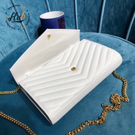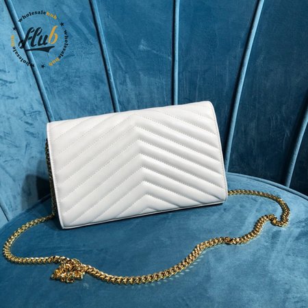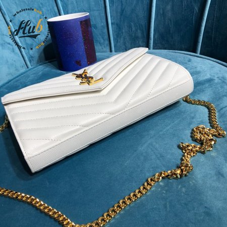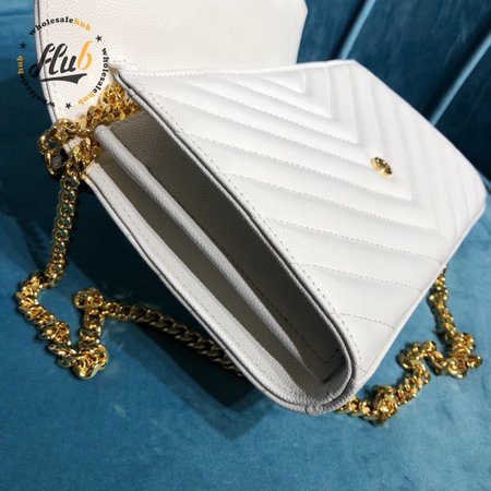 Saint Laurent MONOGRAM Grain Textured Jacquard Leather Chain Crossbody Bag White