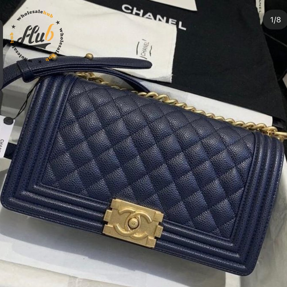 Chanel Boy Navy Blue Caviar Bag
