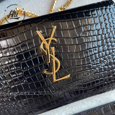 Saint Laurent Cassandre Phone Holder With Strap In Shiny Crocodile-Embossed Leather