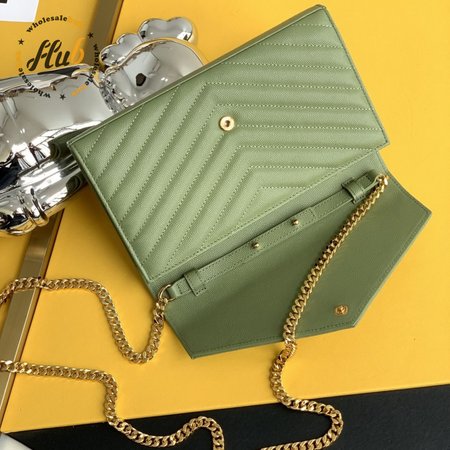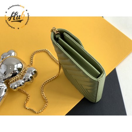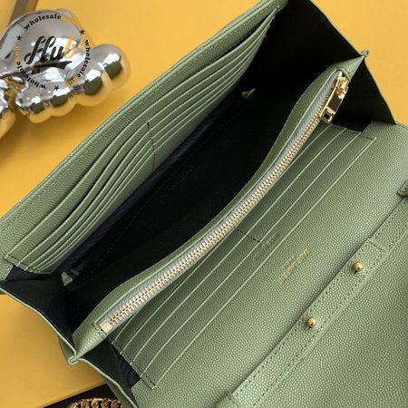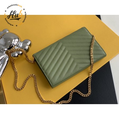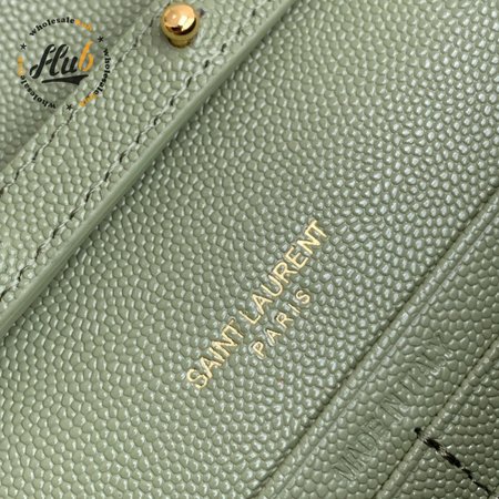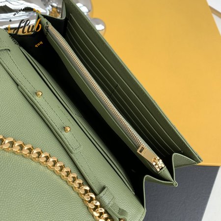 Saint Laurent Monogram Embossed Light Sage Leather Chain Wallet