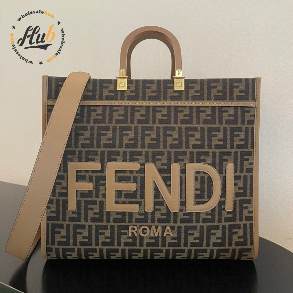 Fendi Sunshine Large Brown FF Jacquard Fabric Shopper 8BH372ALVYF1GE3