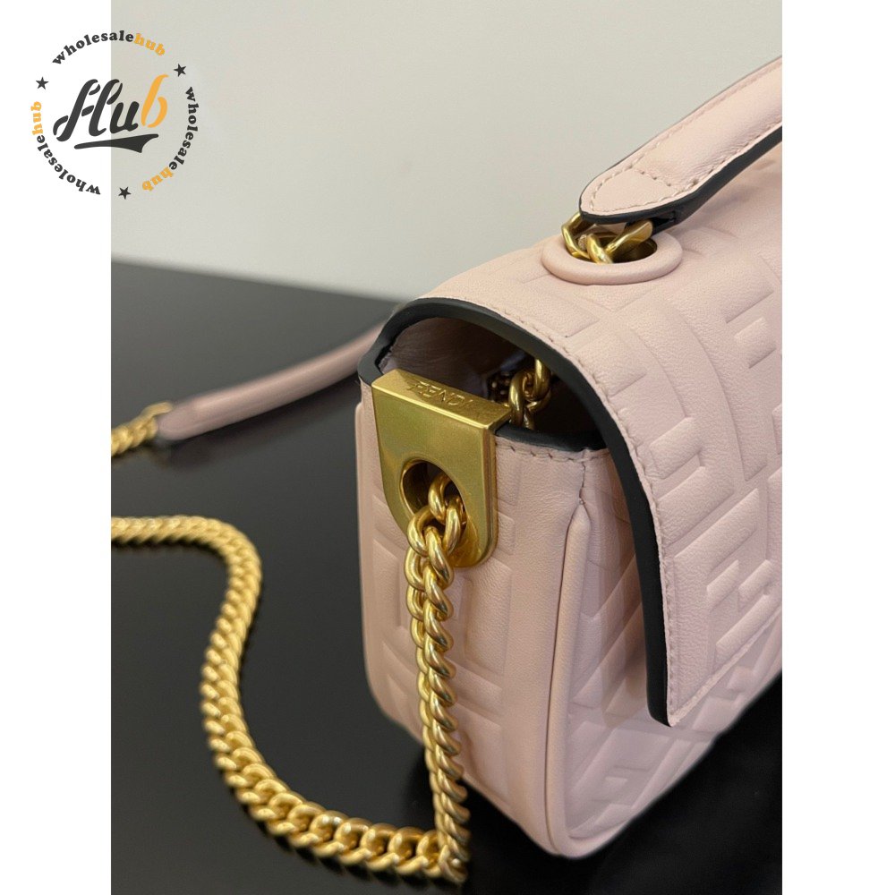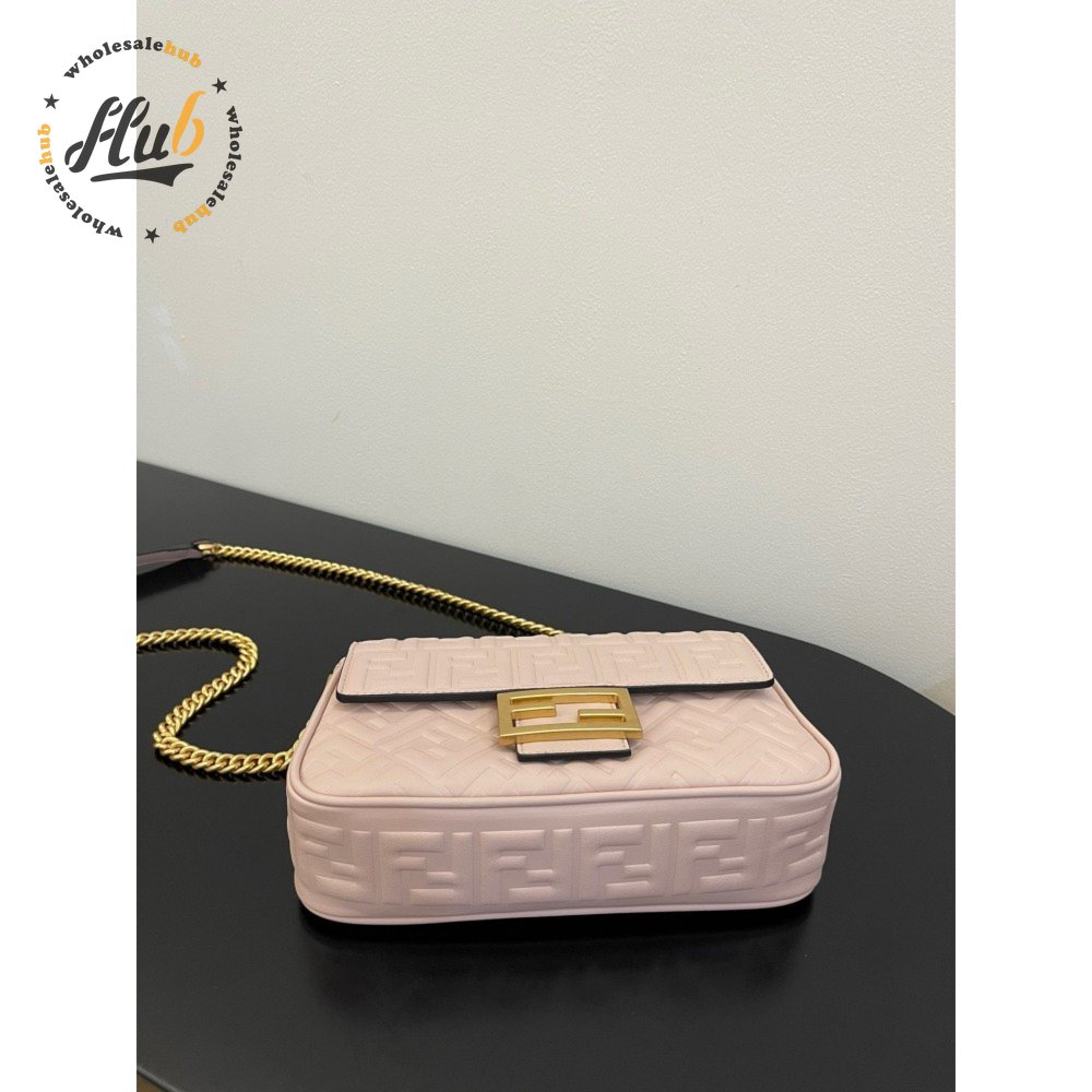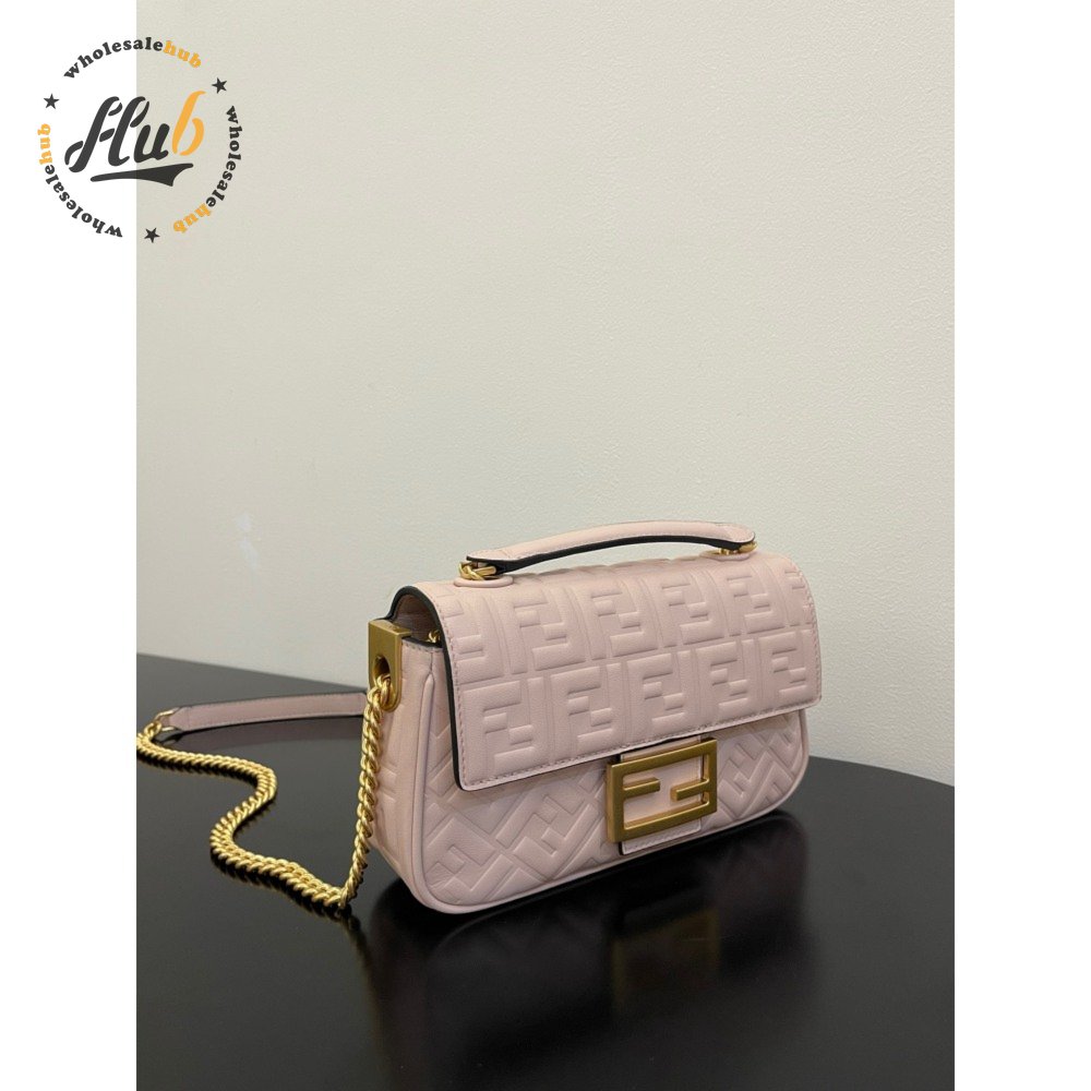 Fendi Baguette Chain Midi Pink Nappa Leather Bag