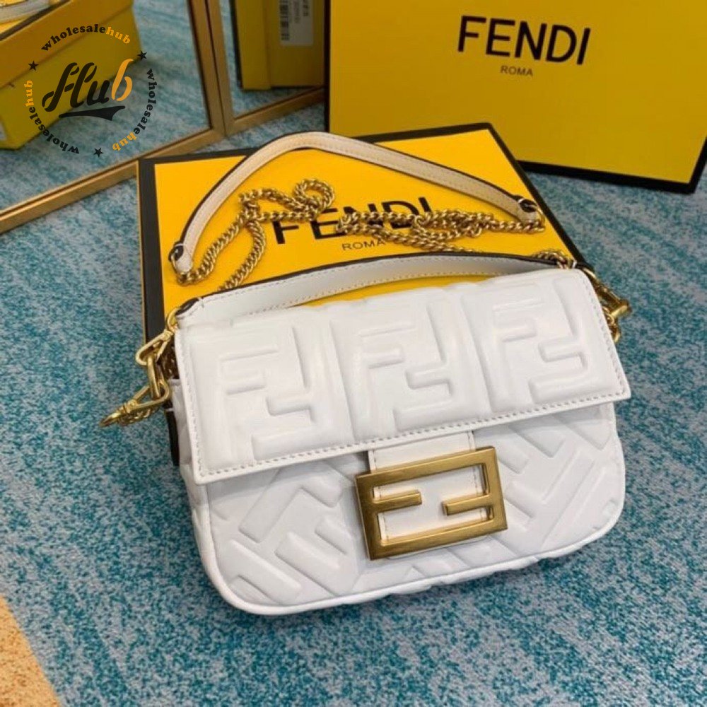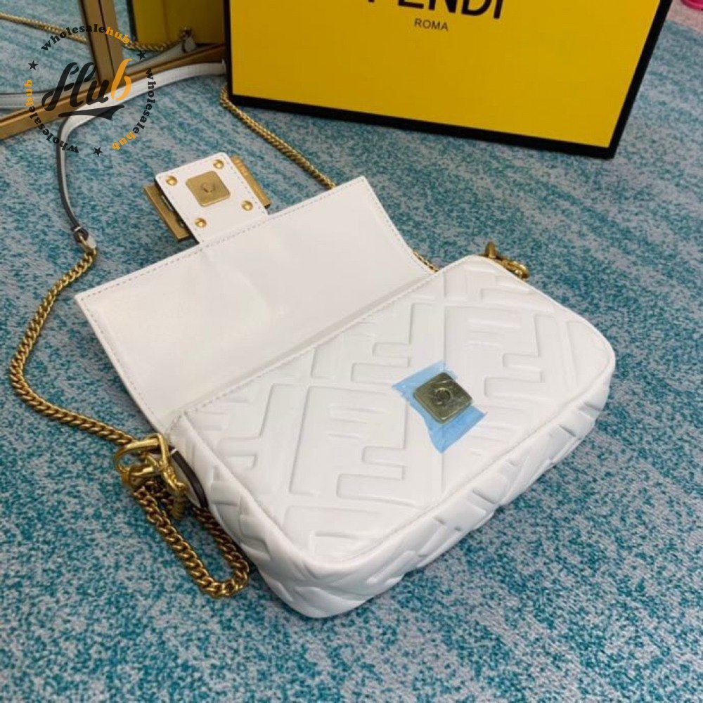 Fendi Baguette Mini White Leather Bag 8BS017A72VF15AO