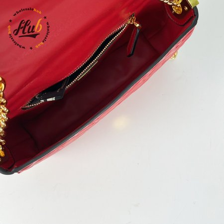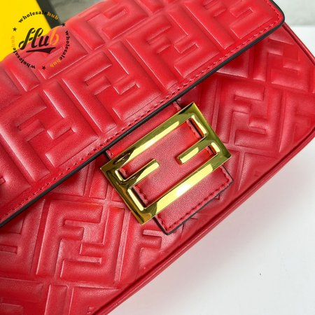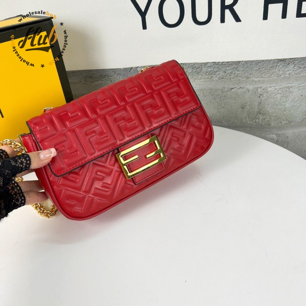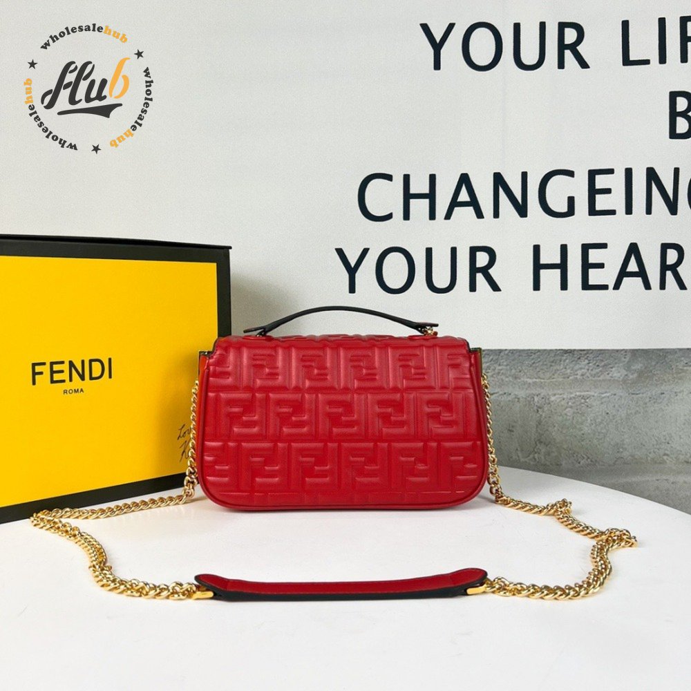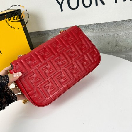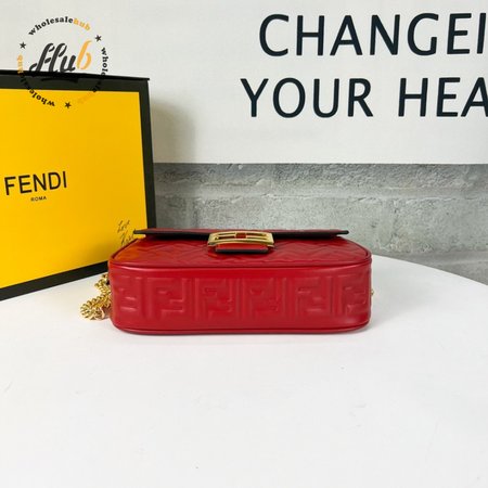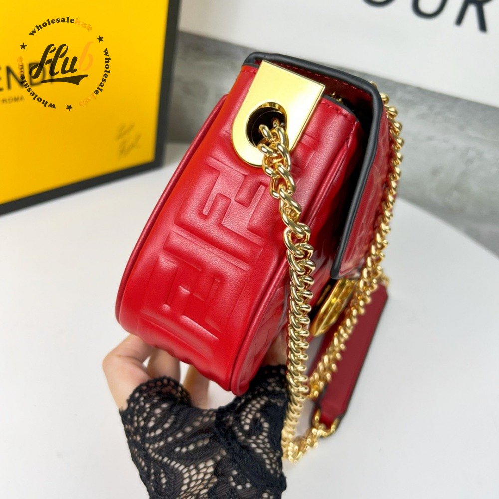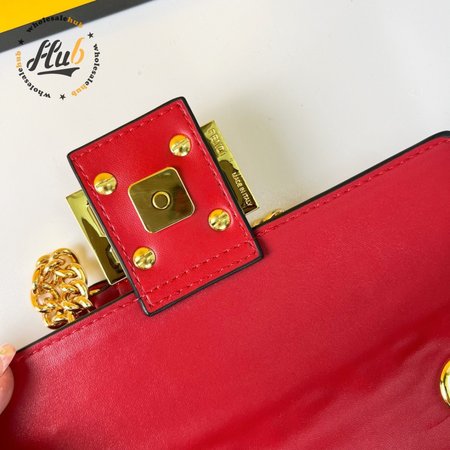 Fendi Baguette Chain Midi Red Leather Bag