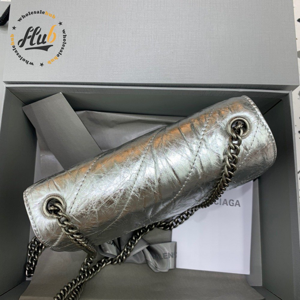 Balenciaga Crush Quilted Metallic Chain Shoulder Bag