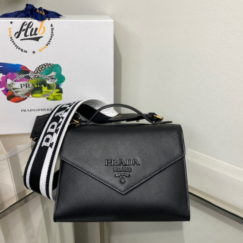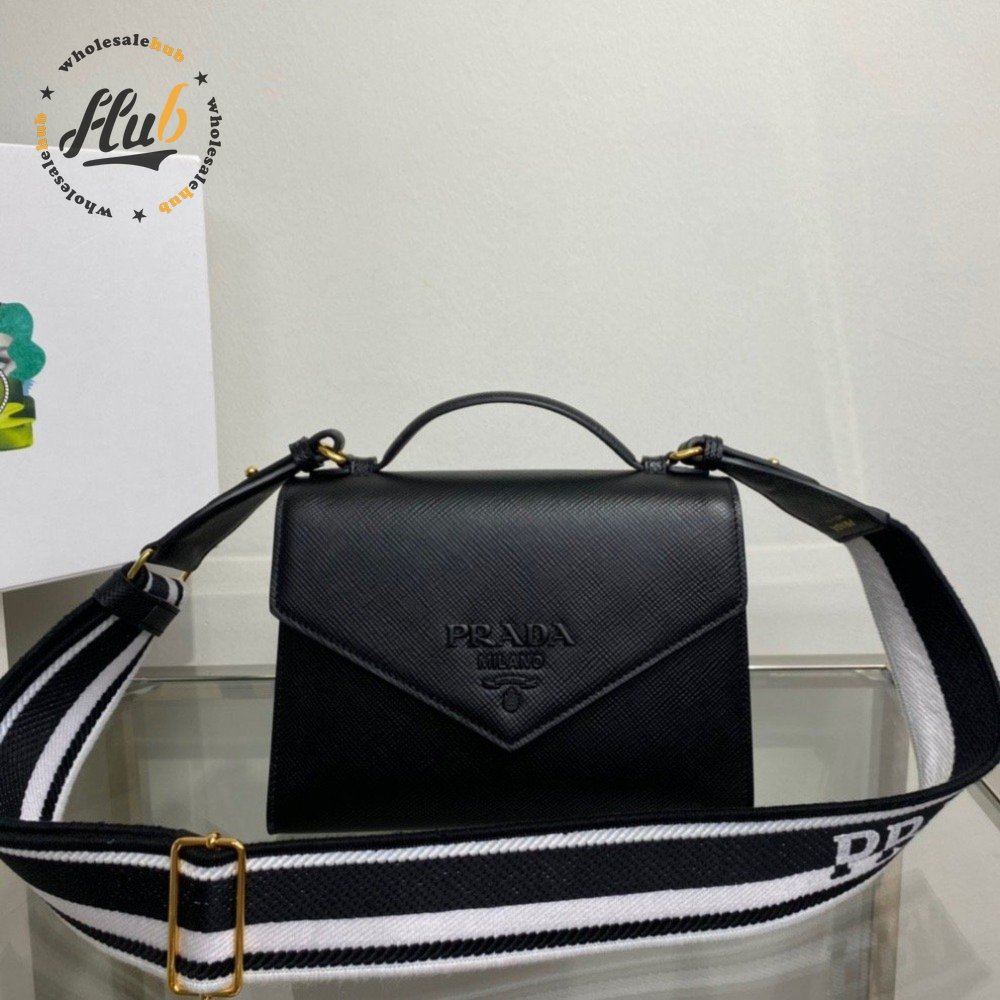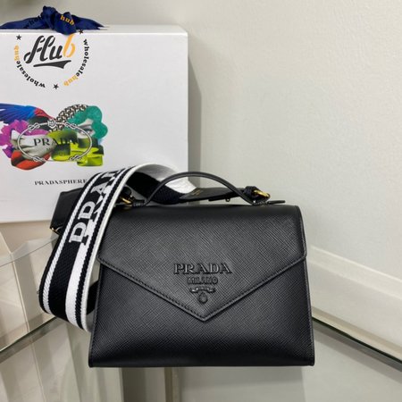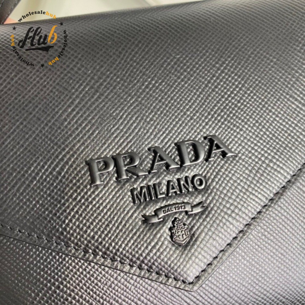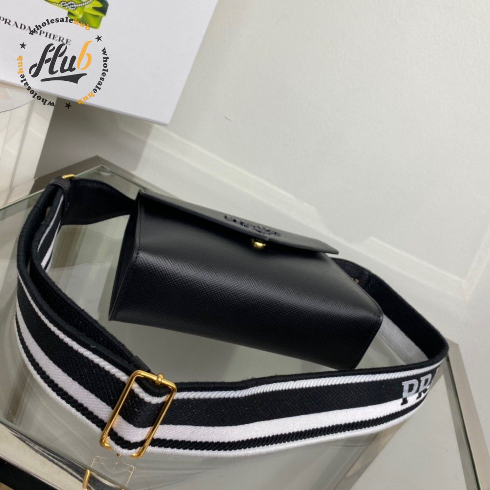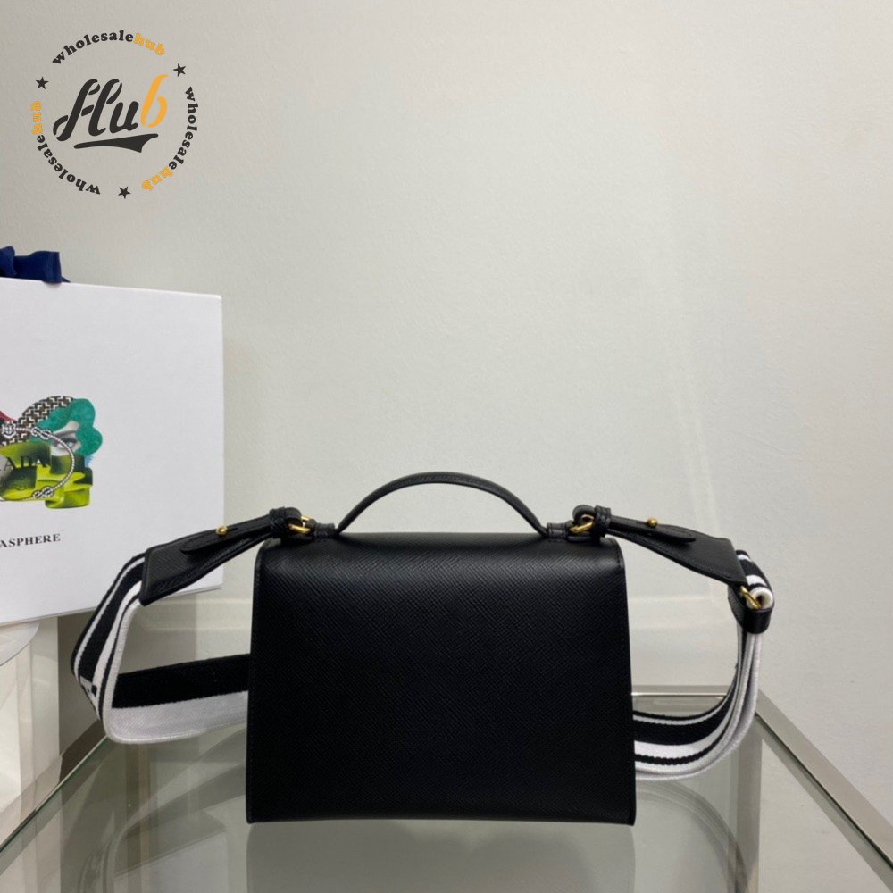 Prada Monochrome Saffiano And Leather Bag Black 1BD317
