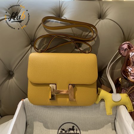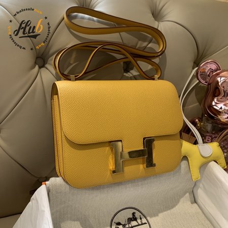 Hermes Constance 18 Jaune Ambre Verso Evercolor Palladium Hardware