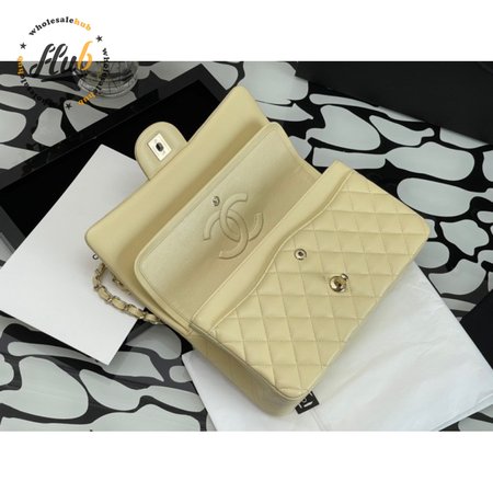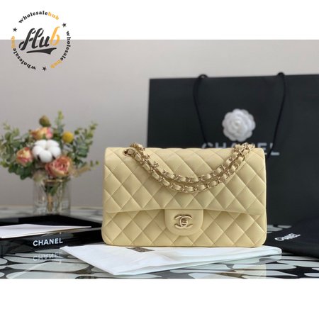 Classic Handbag Cloudy Pearly Goatskin & Gold-Tone Metal Light Yellow
