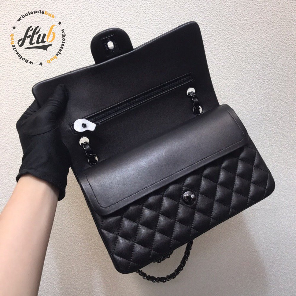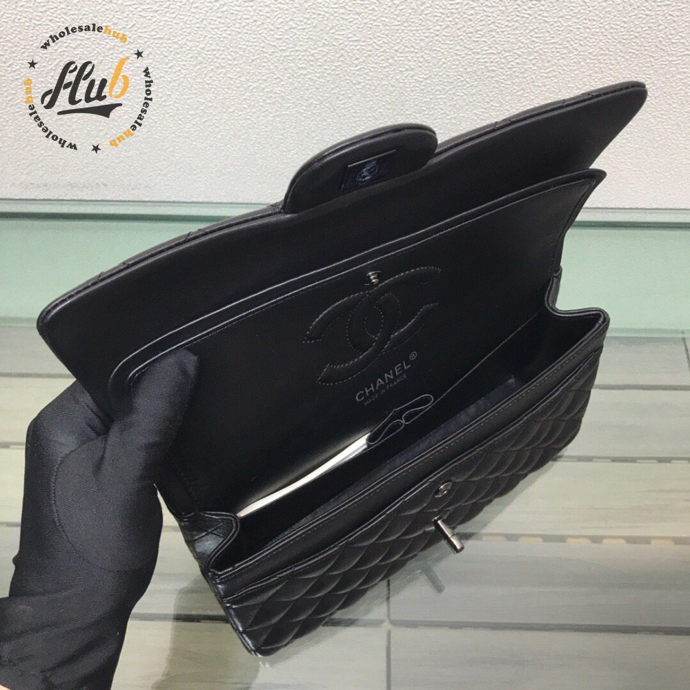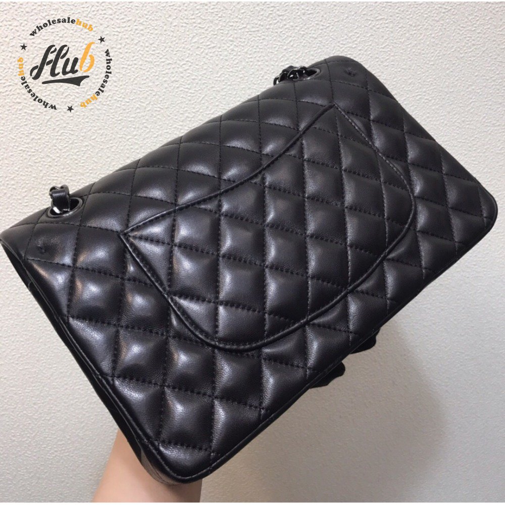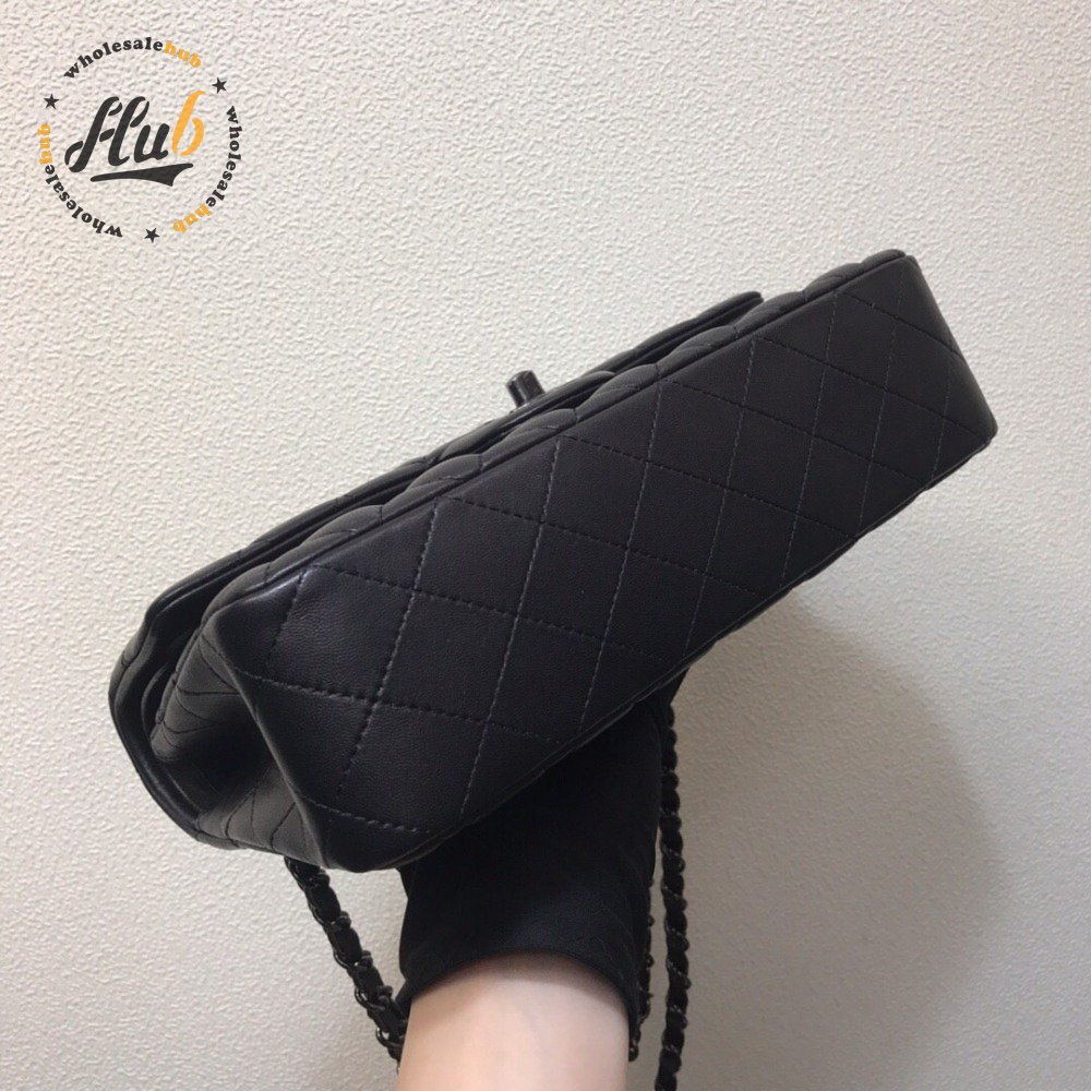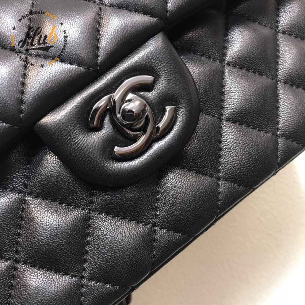 Chanel Classic Handbag Pearly Lambskin & Black-tone Metal Black