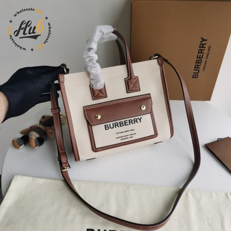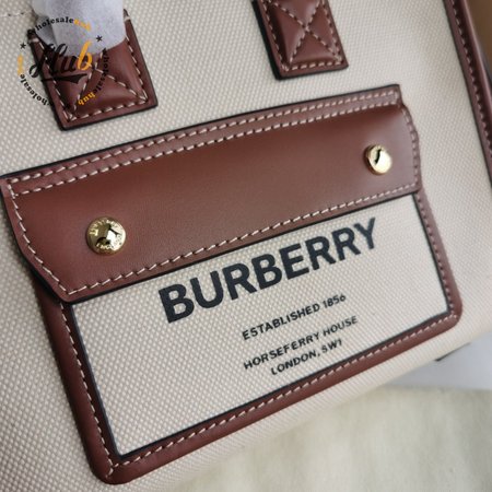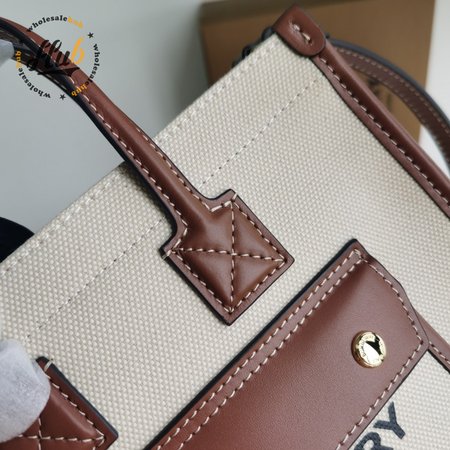 Burberry Two-tone Canvas And Leather Mini Freya Tote Natural/Tan 80441431