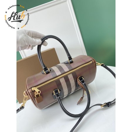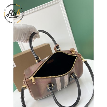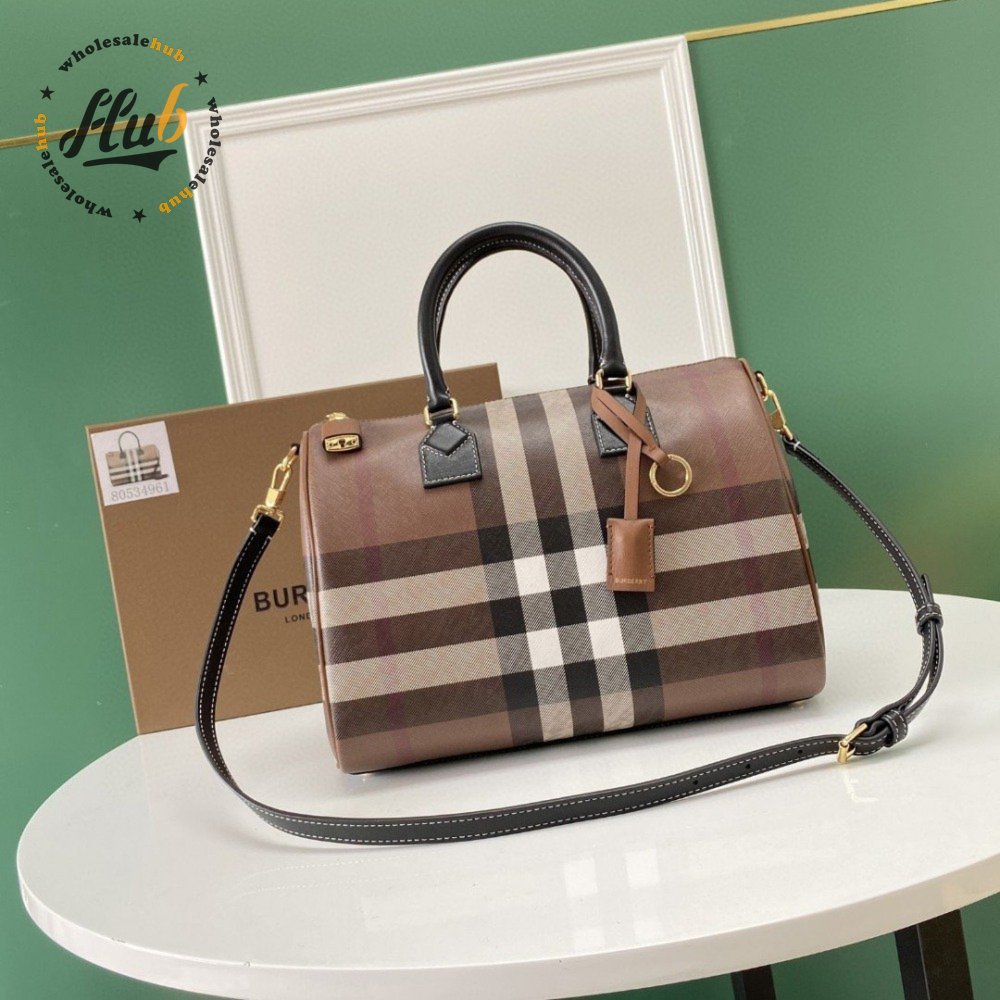 Burberry Check And Leather Medium Bowling Bag Dark Birch Brown 80523481
