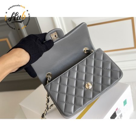 Chanel Quilted Mini Rectangular Flap Bag Grey