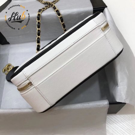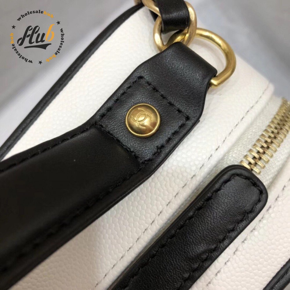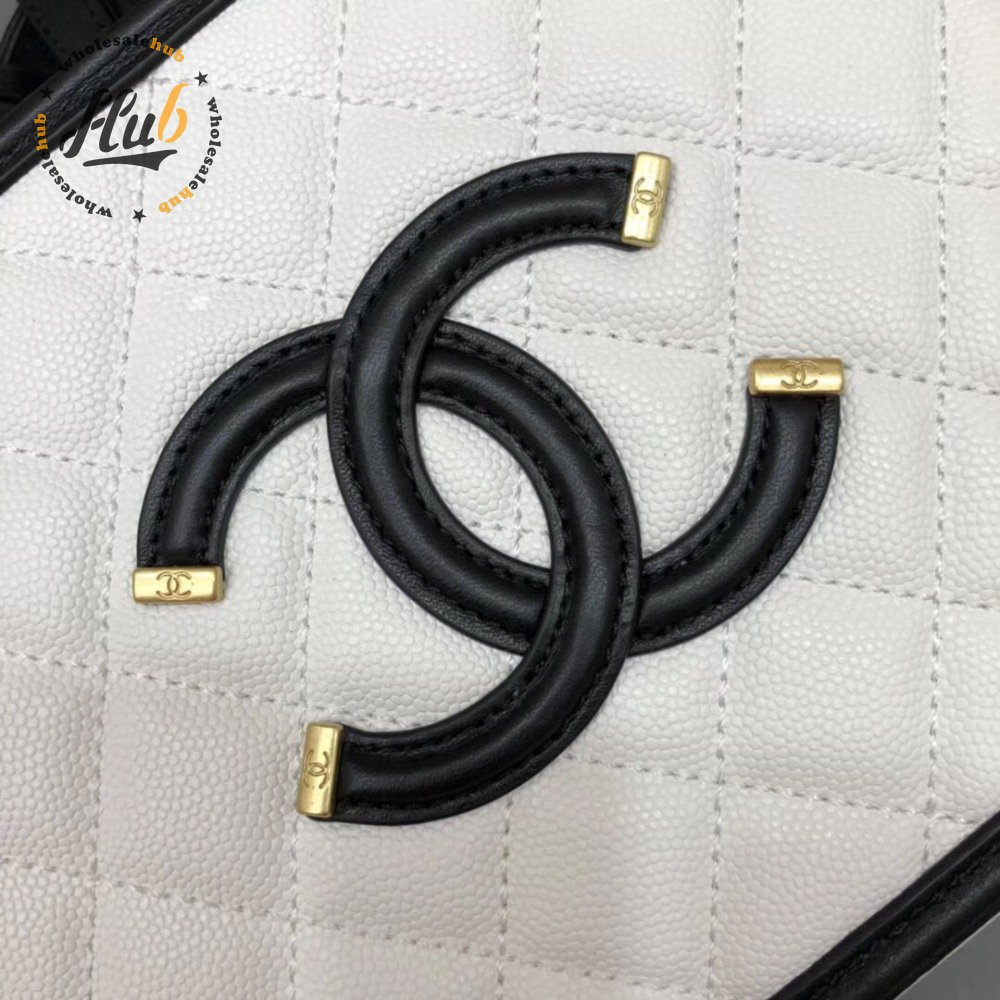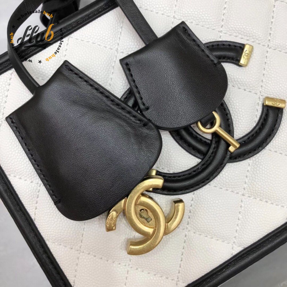 Chanel White & Black Quilted Caviar Leather