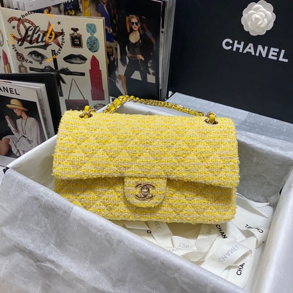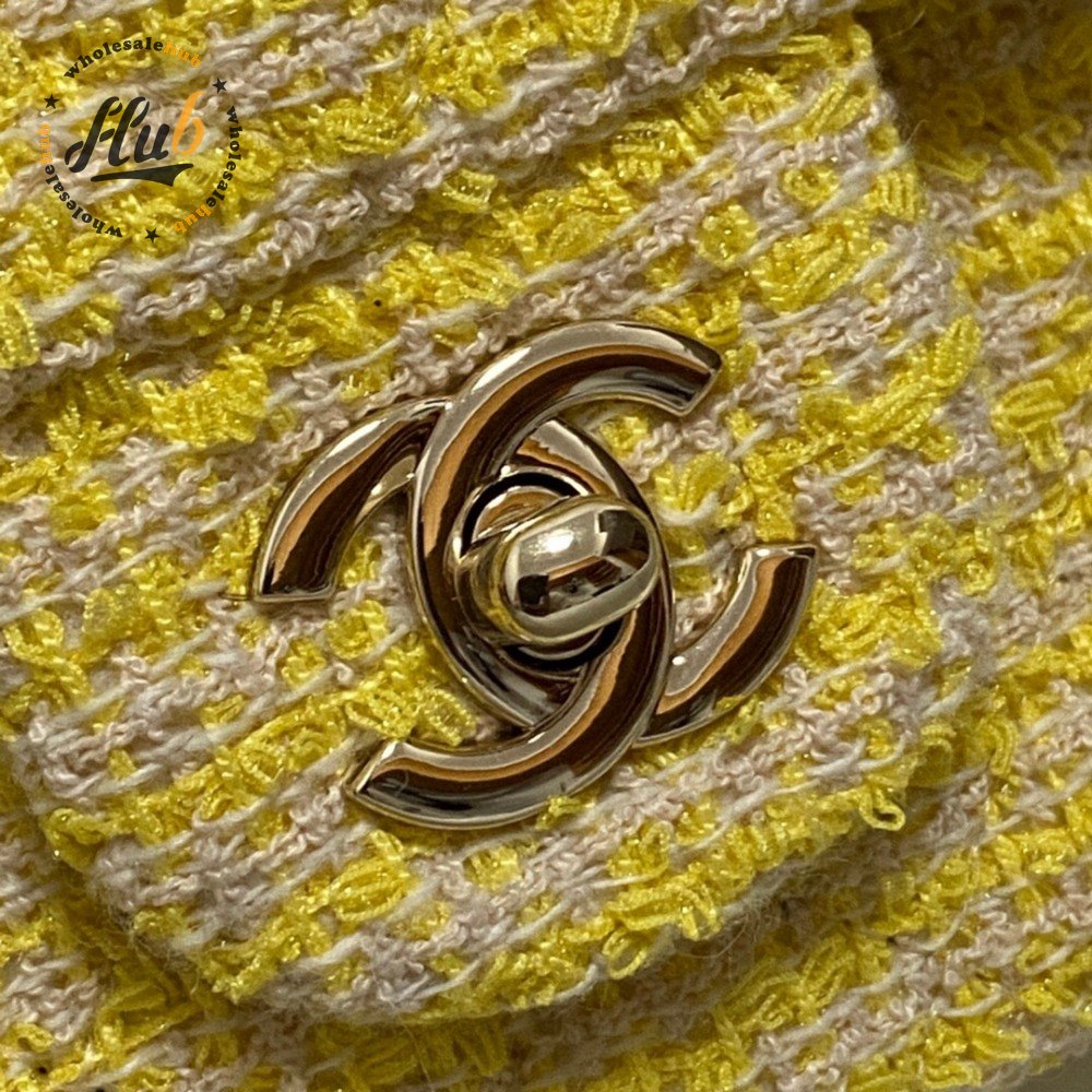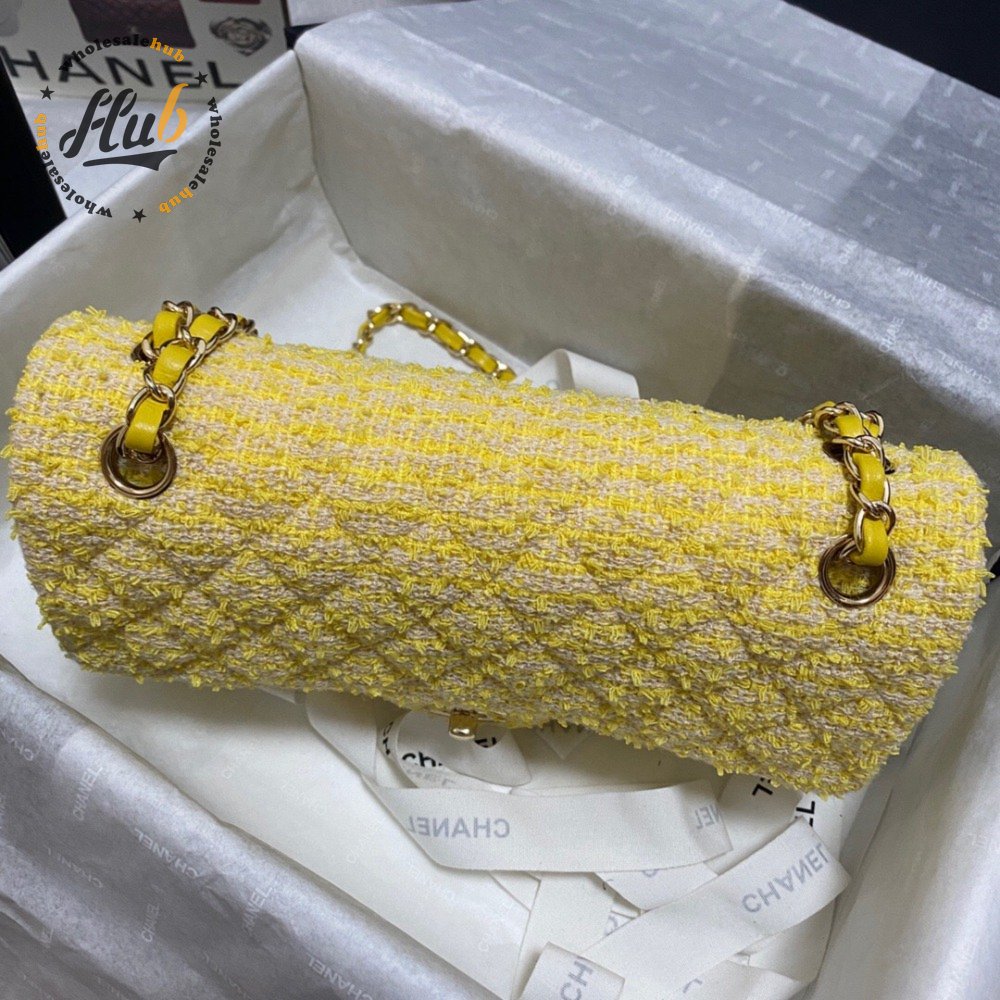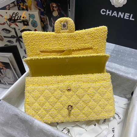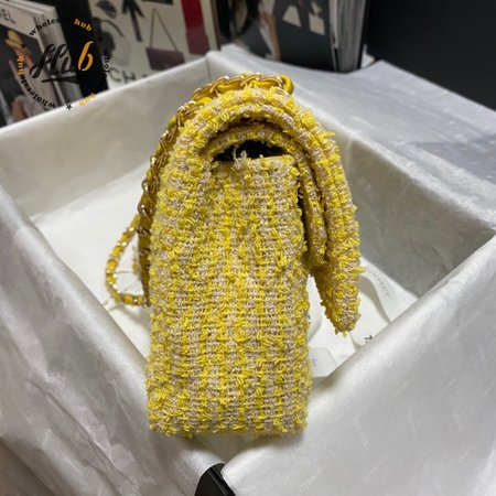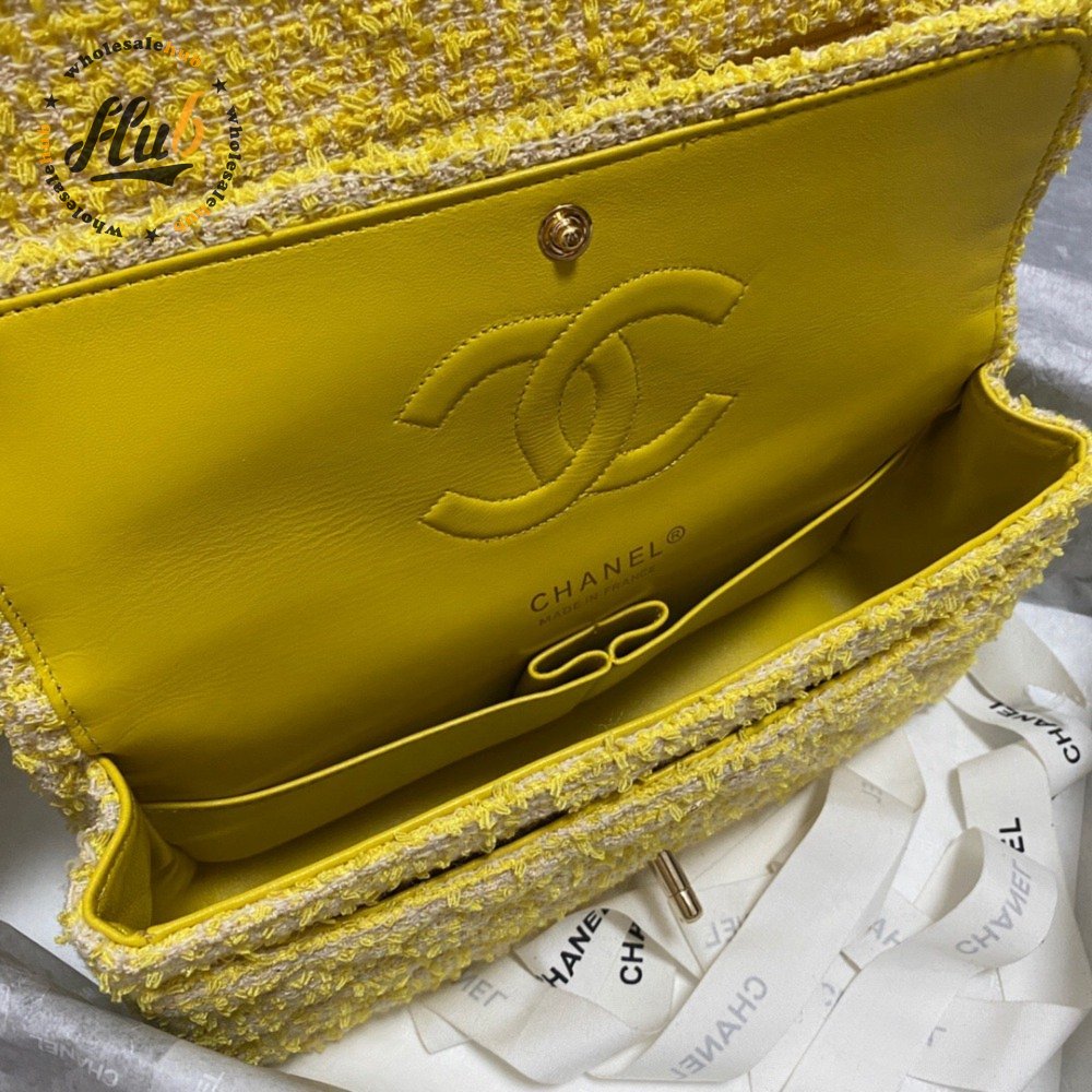 Chanel Yellow Tweed And Leather Double Flap Bag