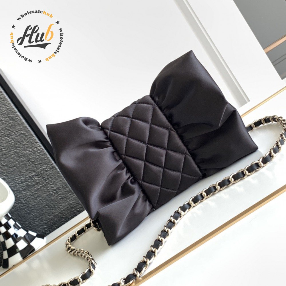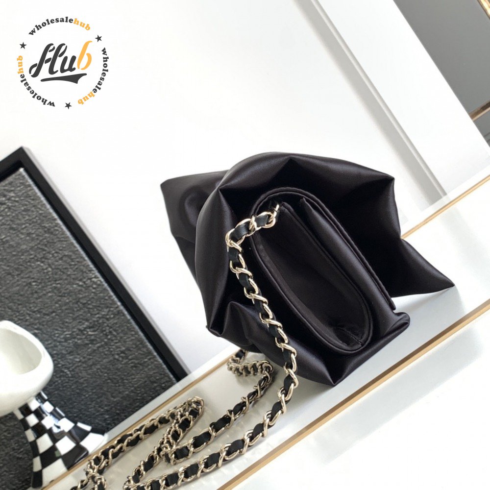 Chanel Clutch Satin & Gold-Tone Metal Black