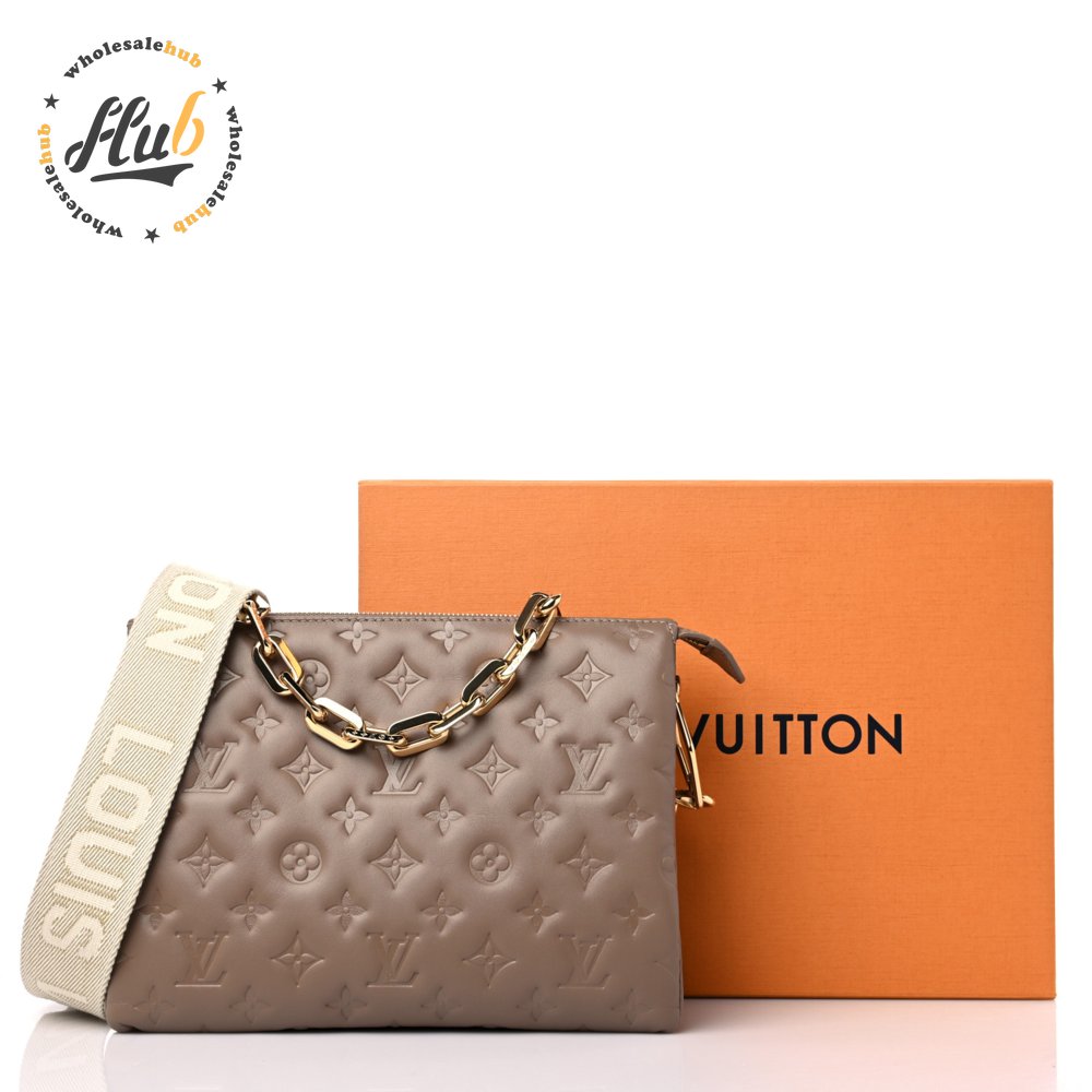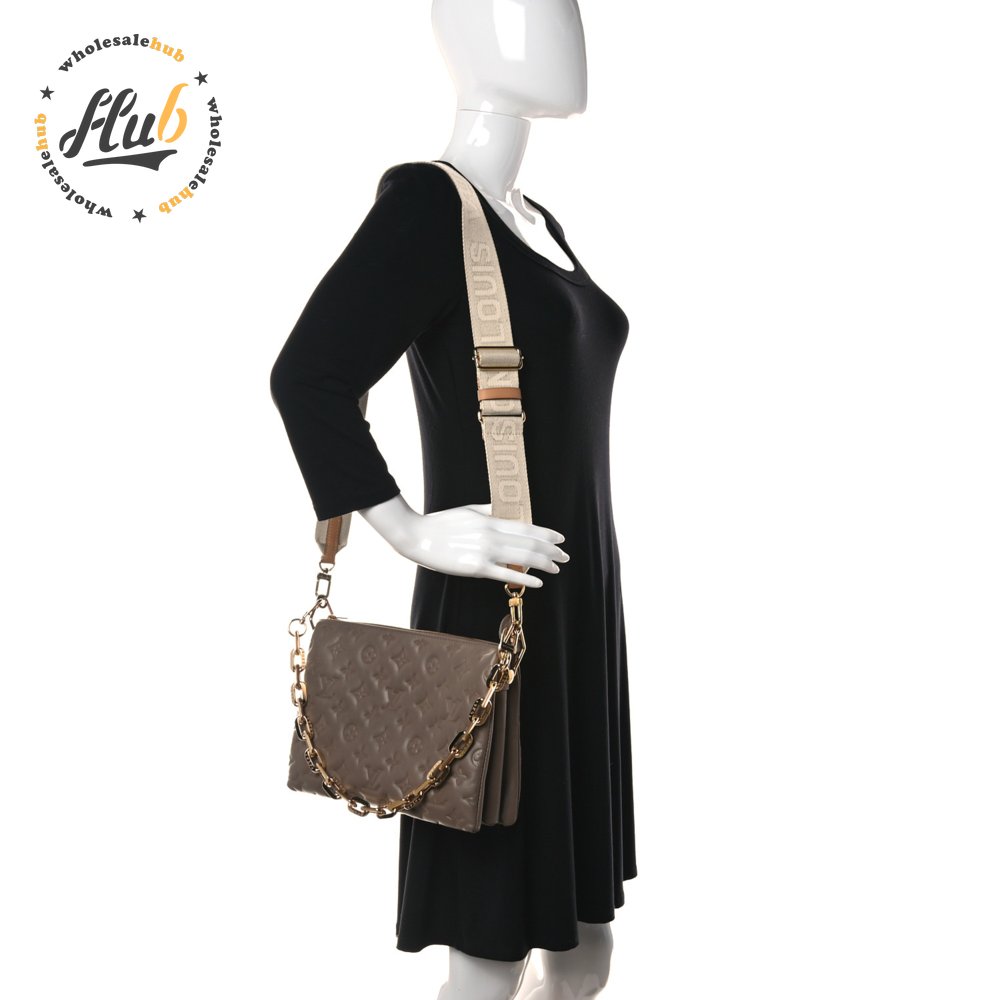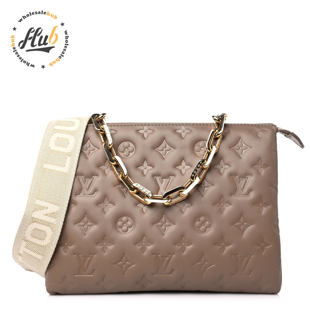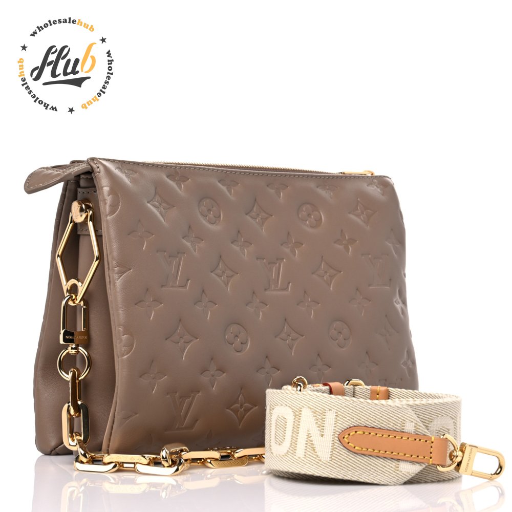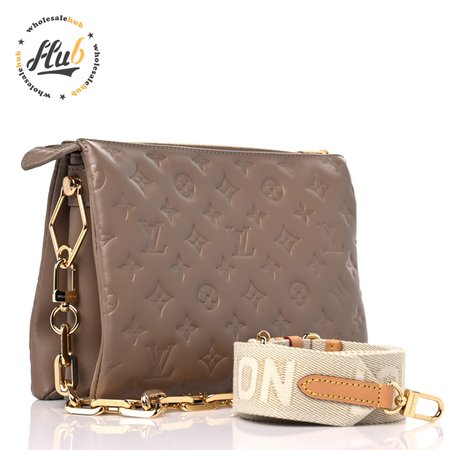 Lambskin Embossed Monogram Coussin PM Taupe