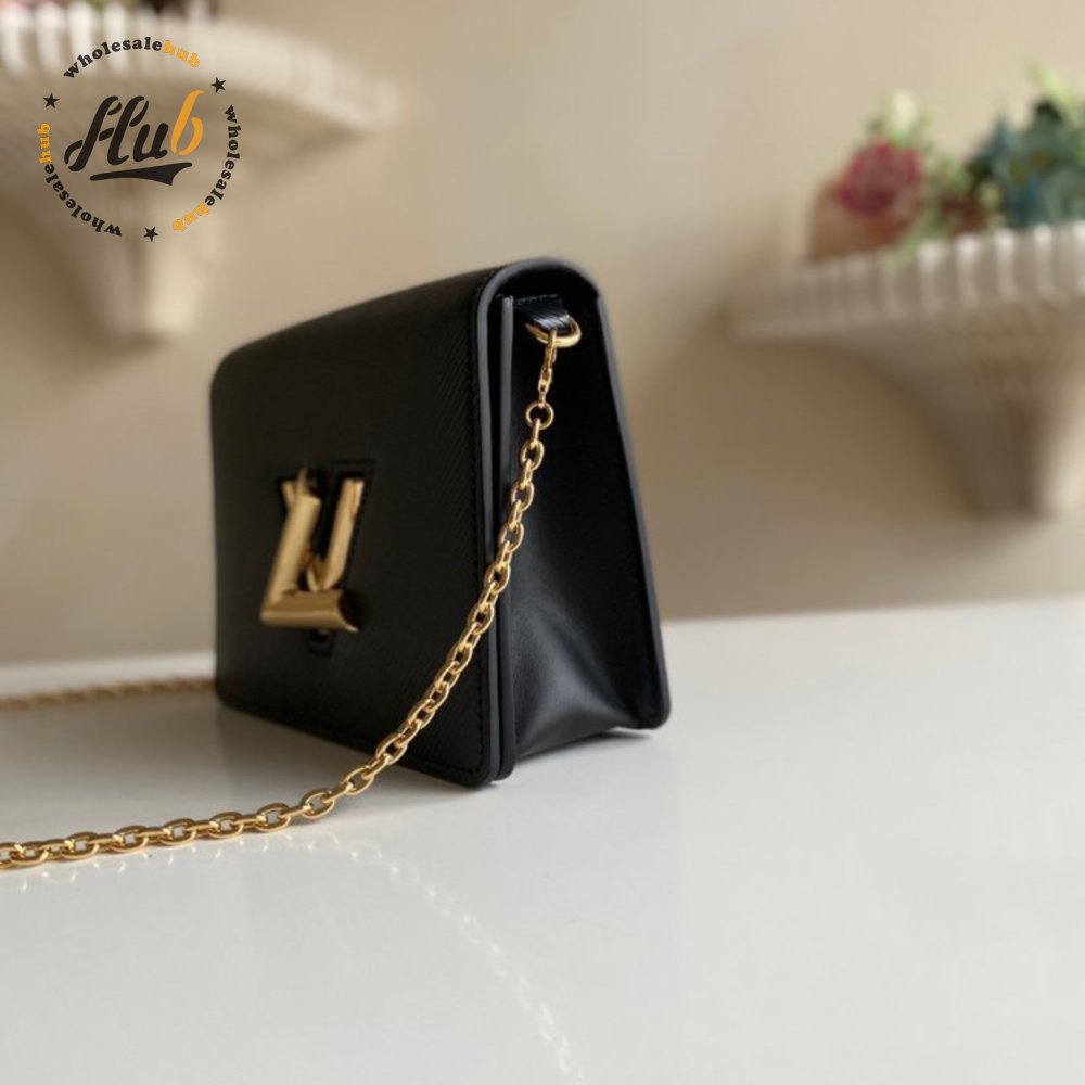 Twist Chain Wallet Epi Grained Leather Black
