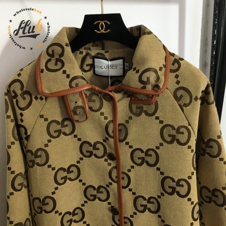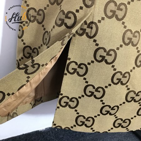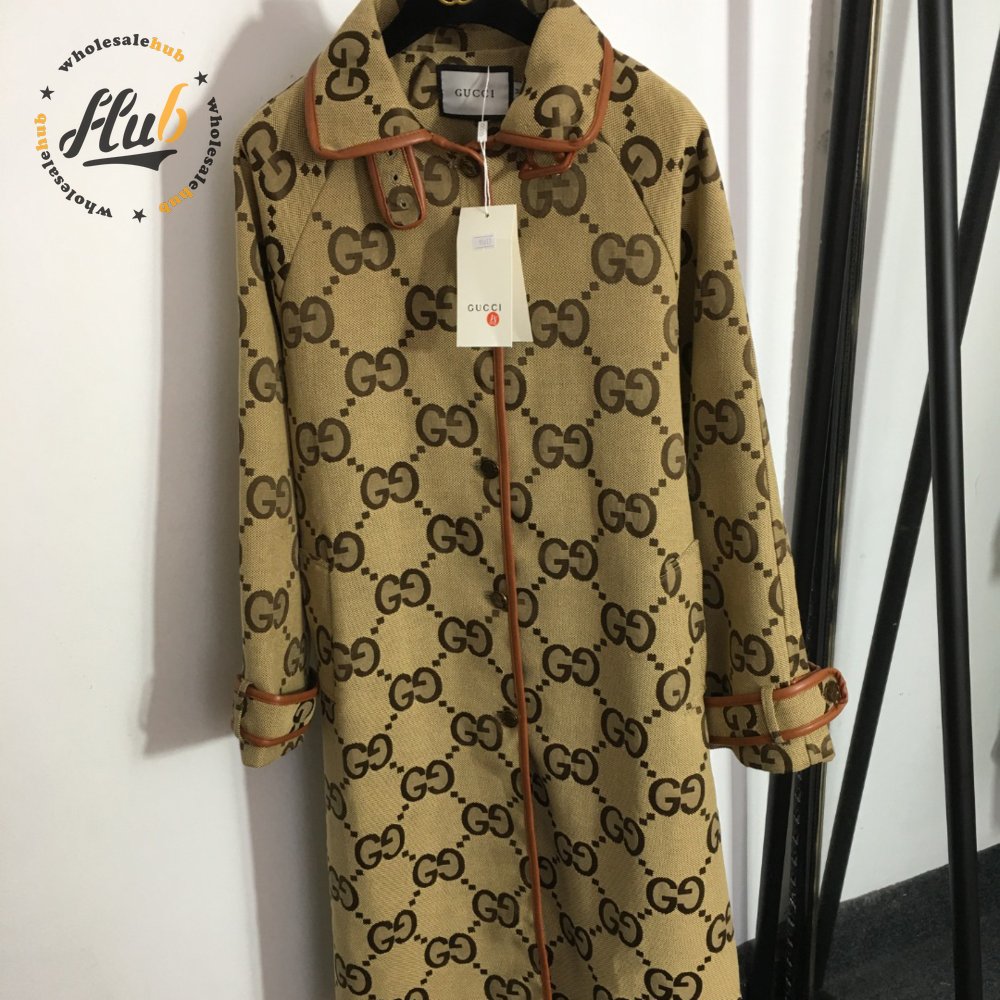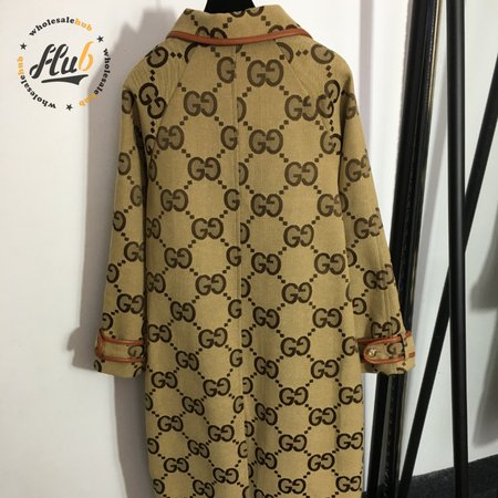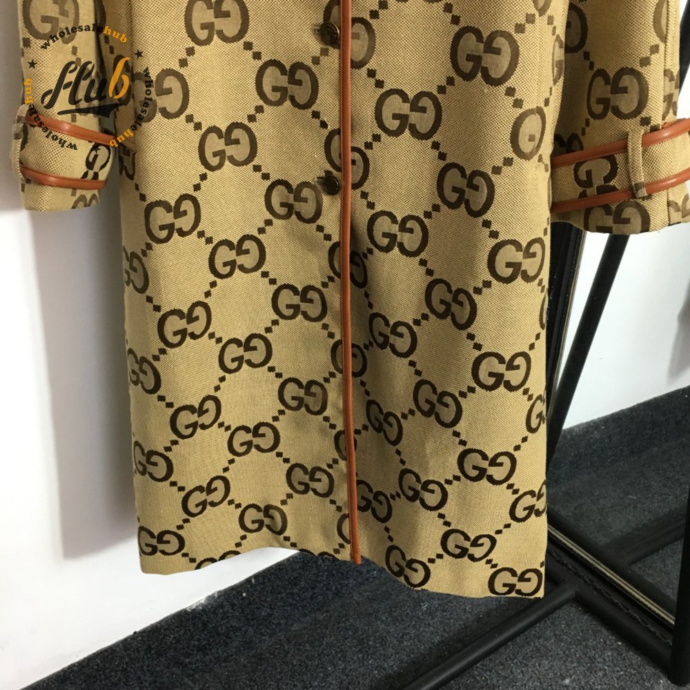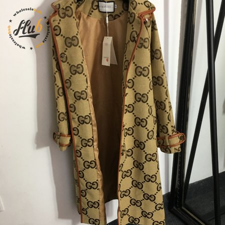 Gucci G Jacquard Letter Leather-Bound Mid-Length Trench Coat