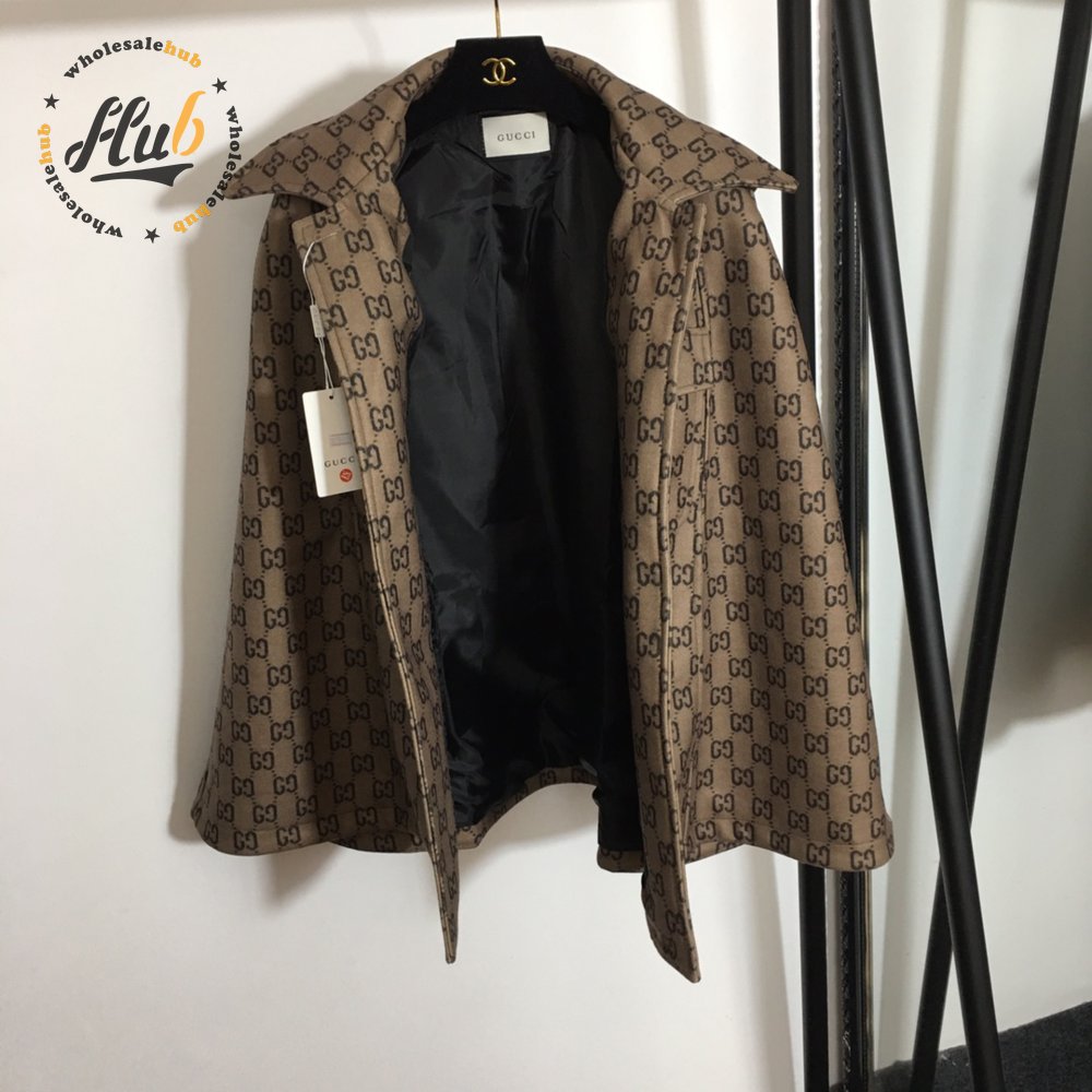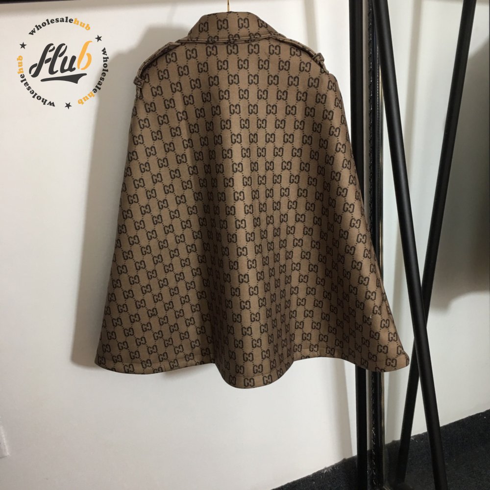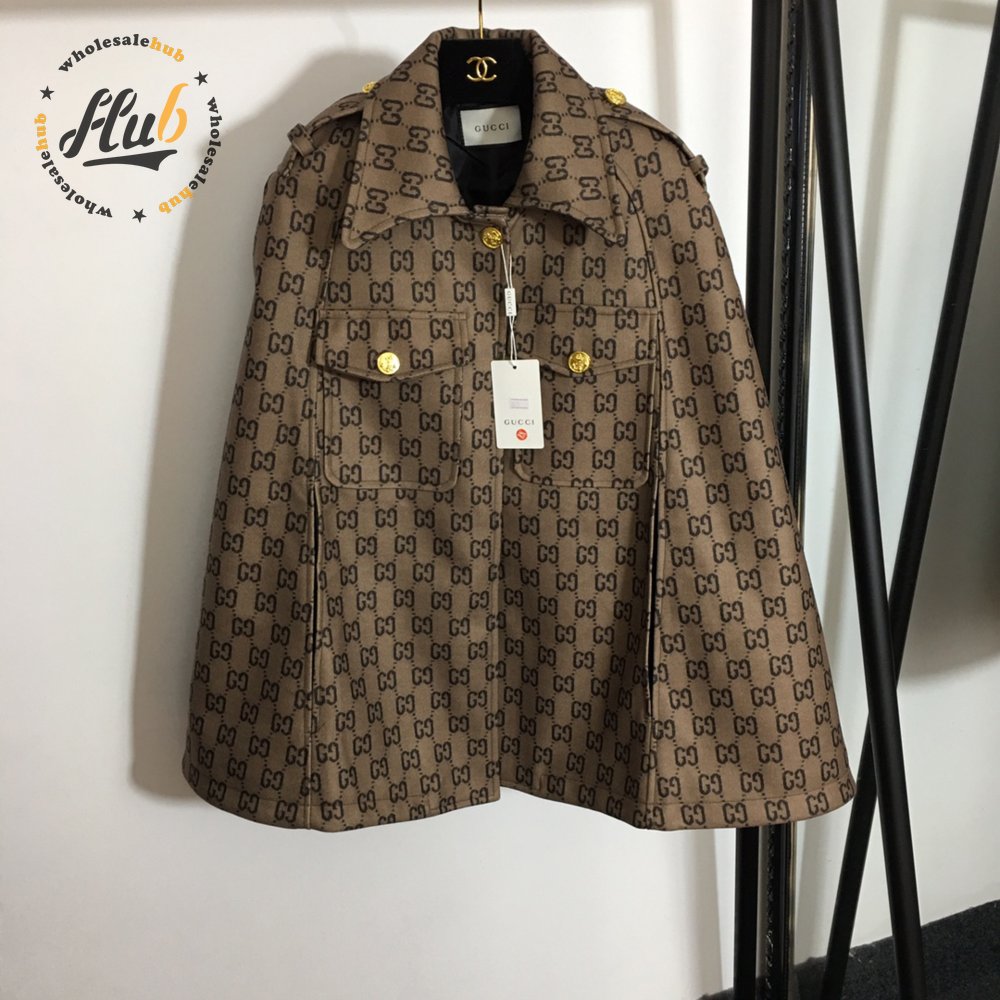 Gucci Double G Letter Print Woolen Cape Coat