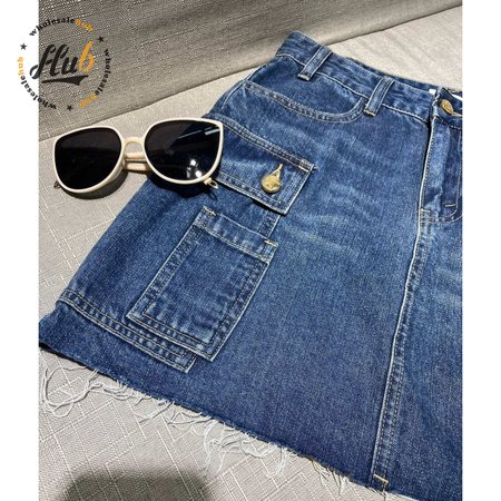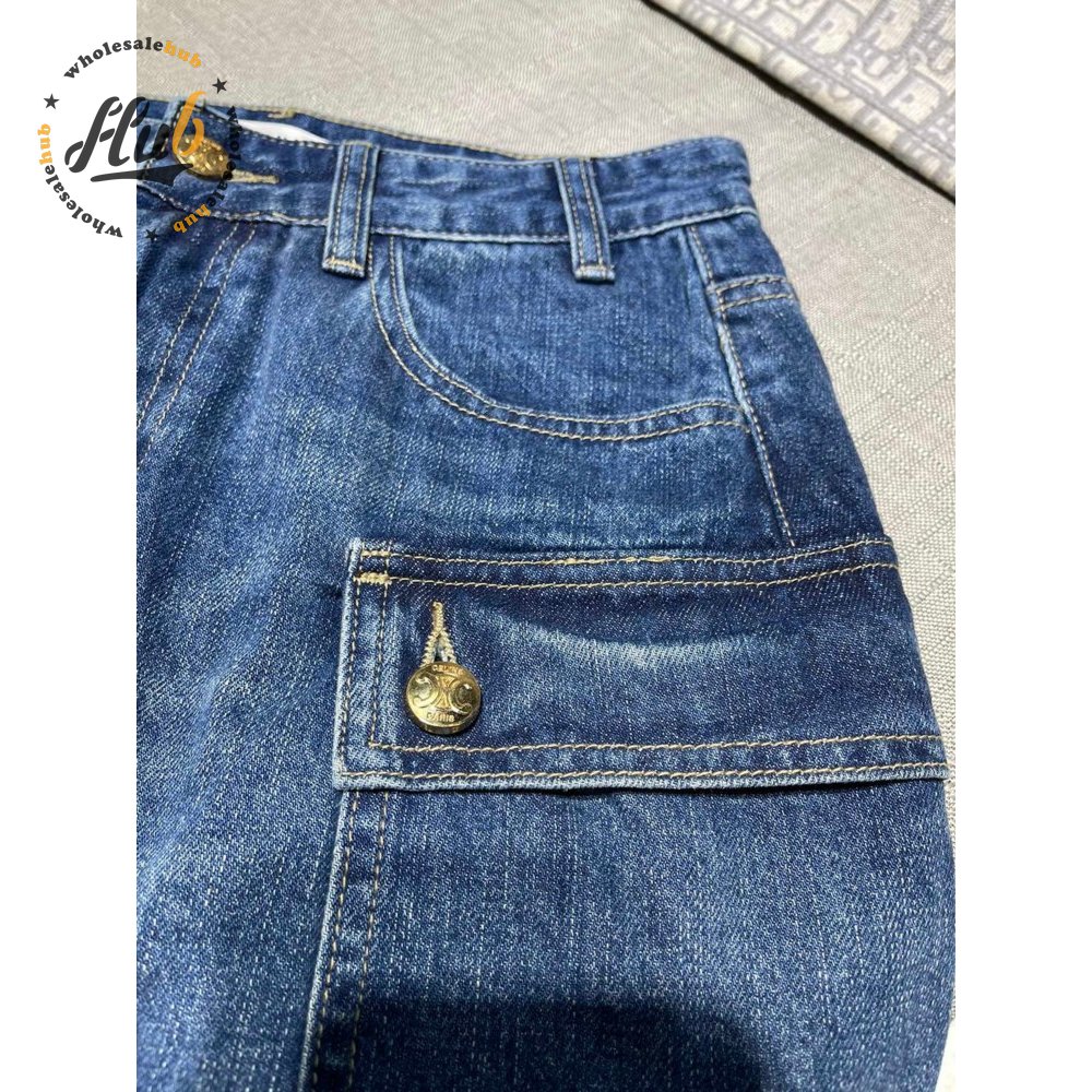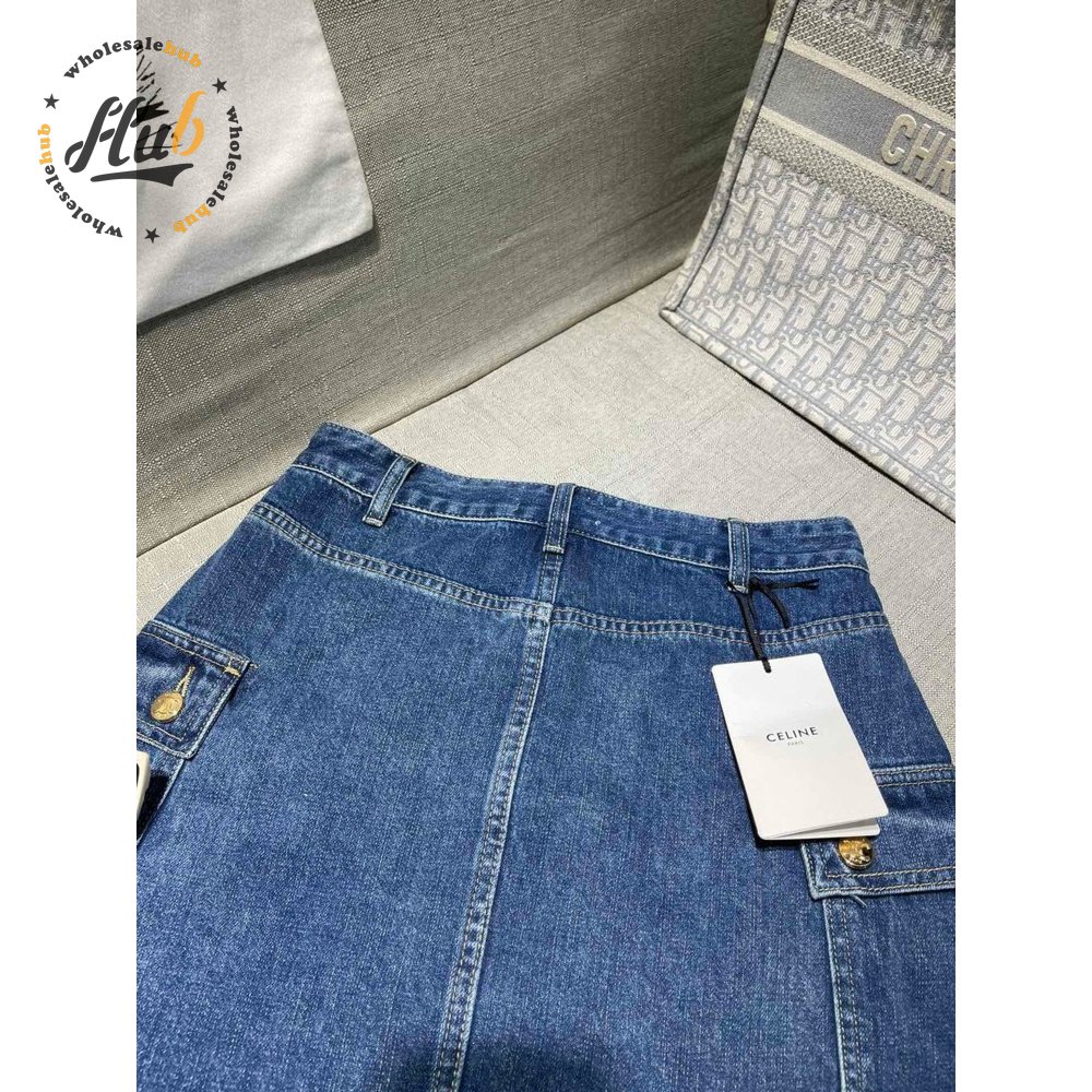 Celine Cargo Mini Skirt In Dark Union Wash Denim S-L