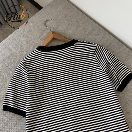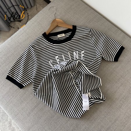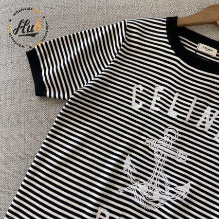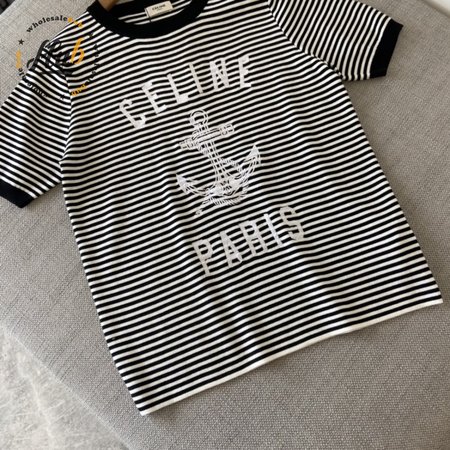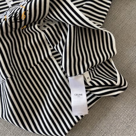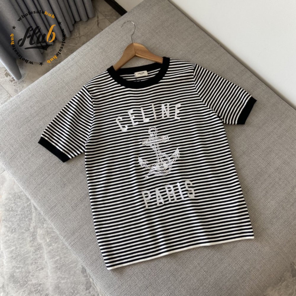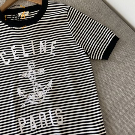 Celine Anchor Striped Jersey 70s Style T-Shirt Fluorescent White/Black