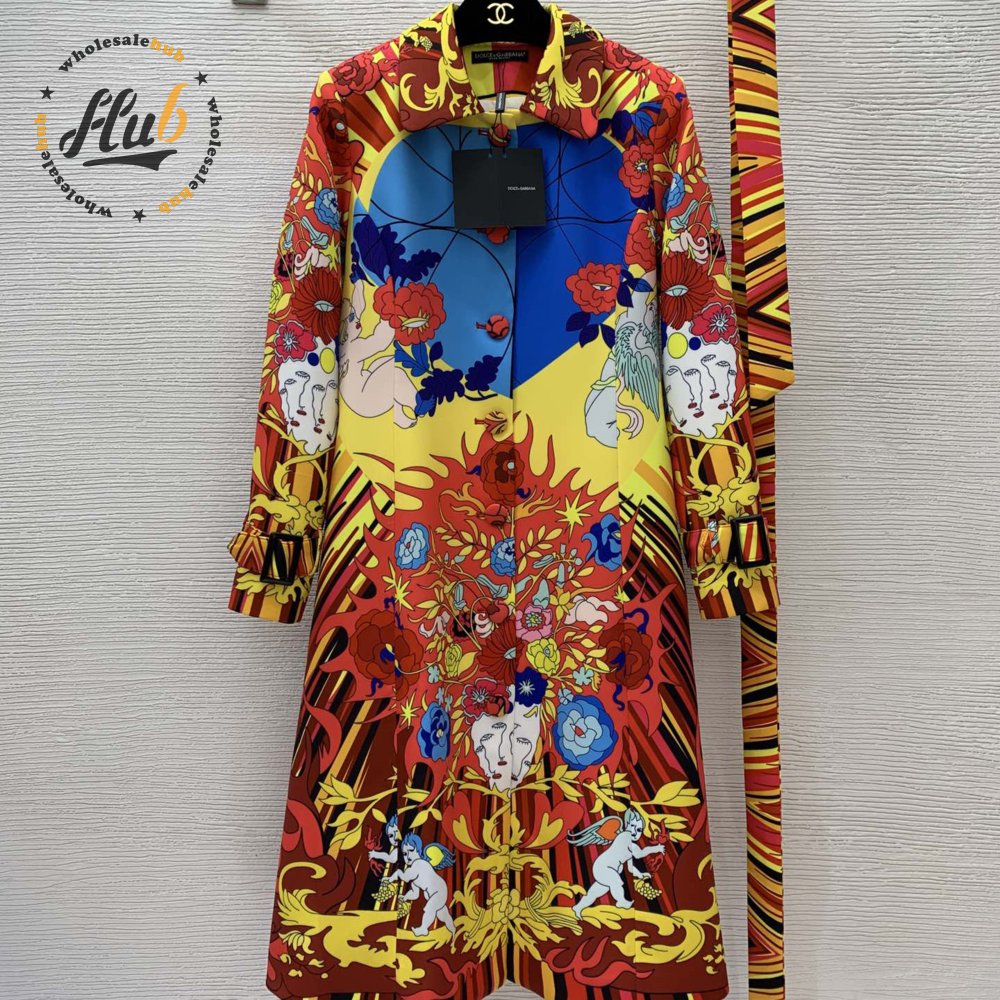 Dolce & Gabbana Cupid-Print Button-Down Lapel Slim-Fit Trench Coat
