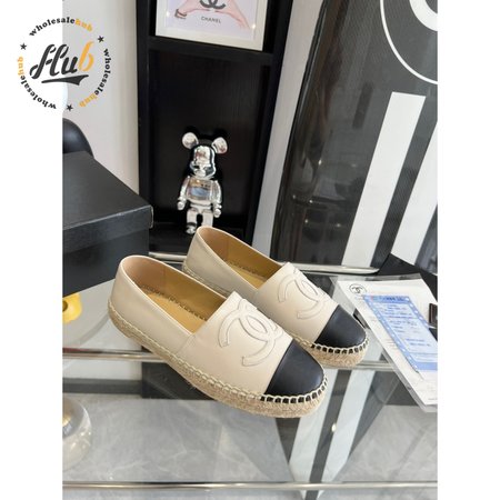 Chanel Lambskin Espadrilles 37 White Black Size 35-40
