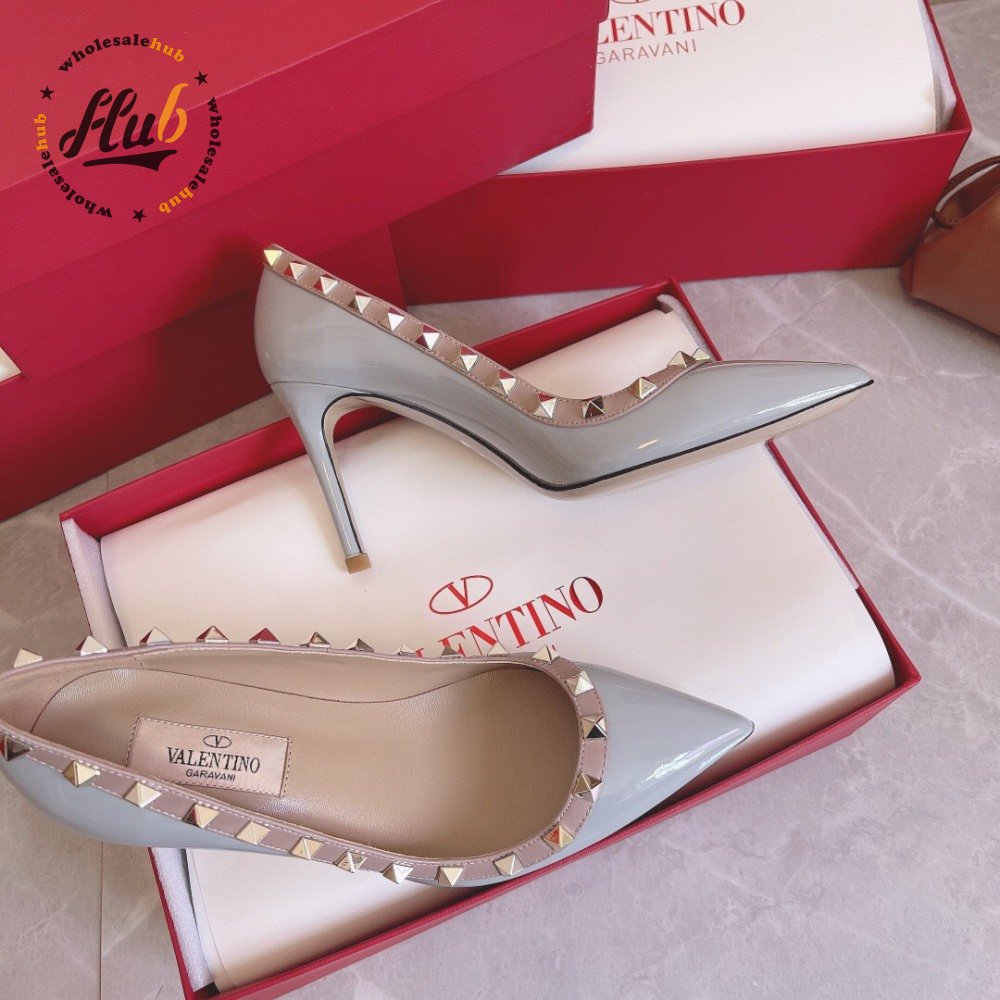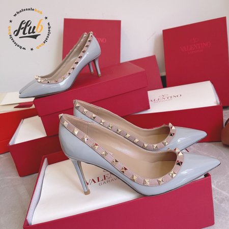 Valentino Garavani Grey & Pink Valentino Garavani Rockstud Heels