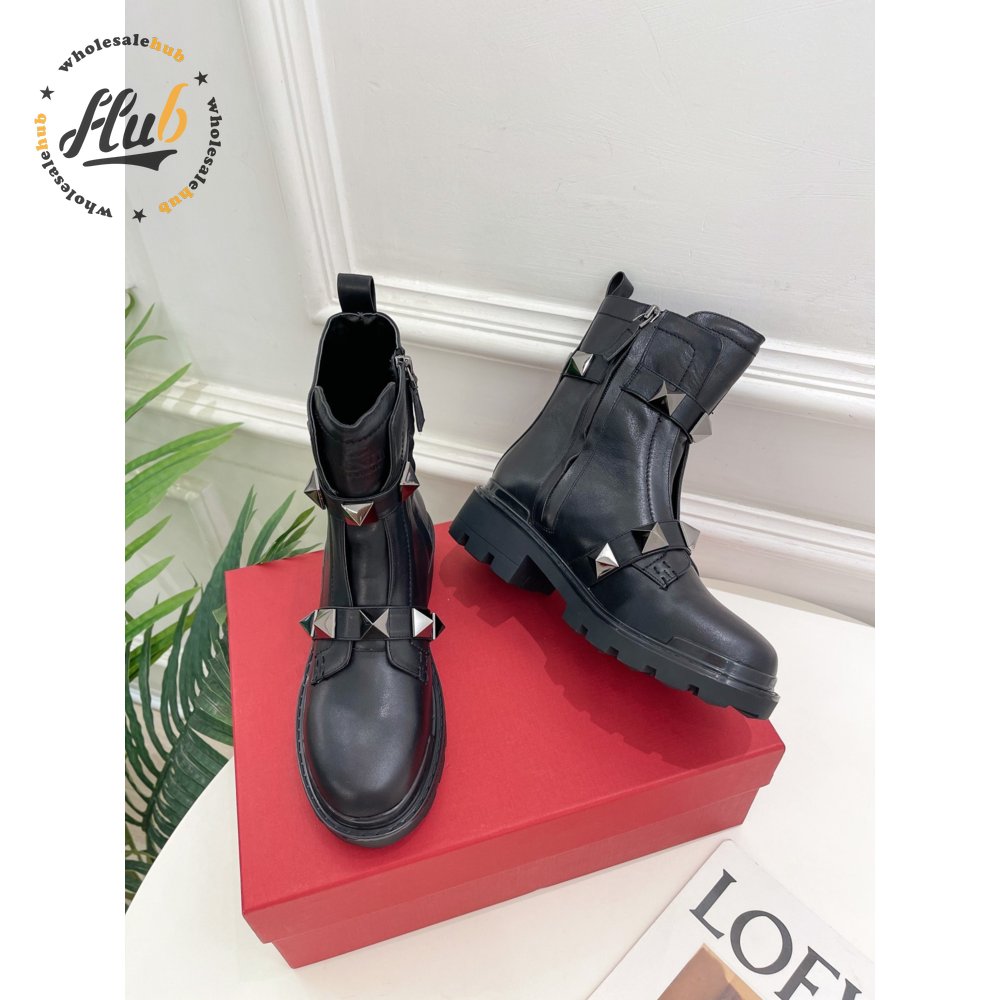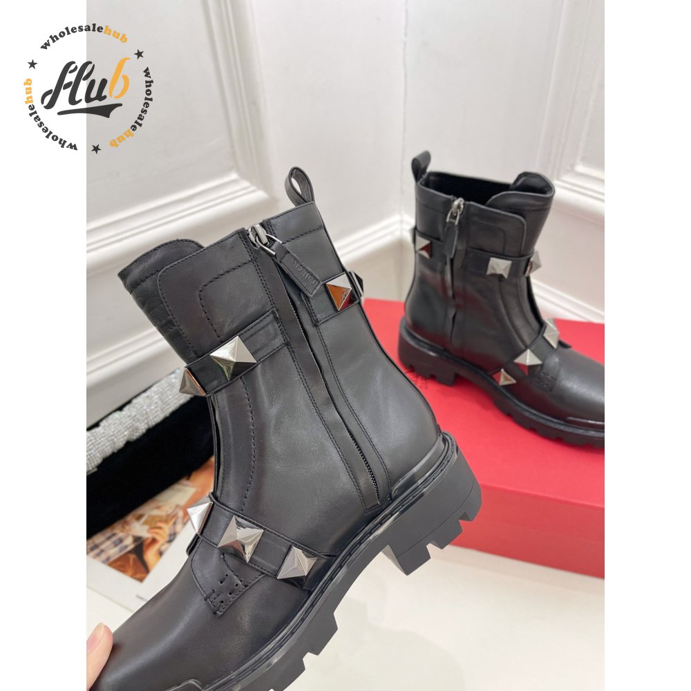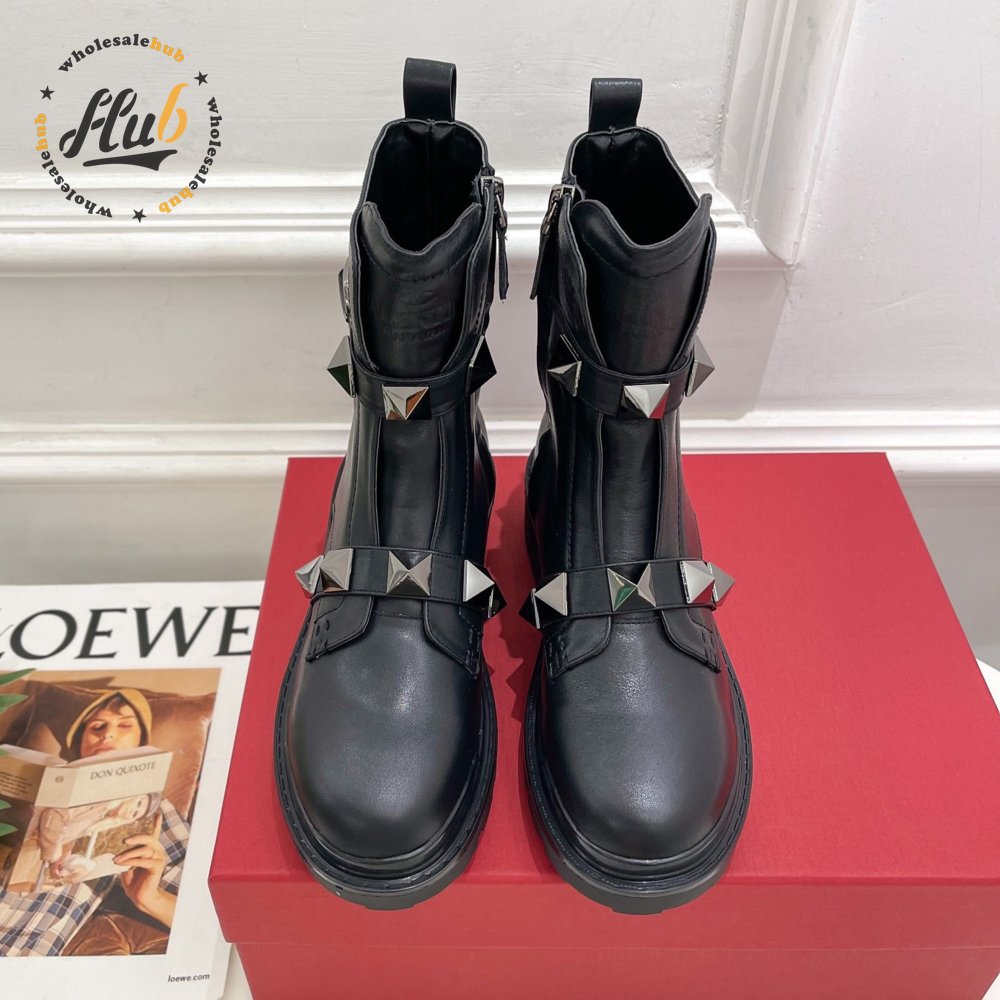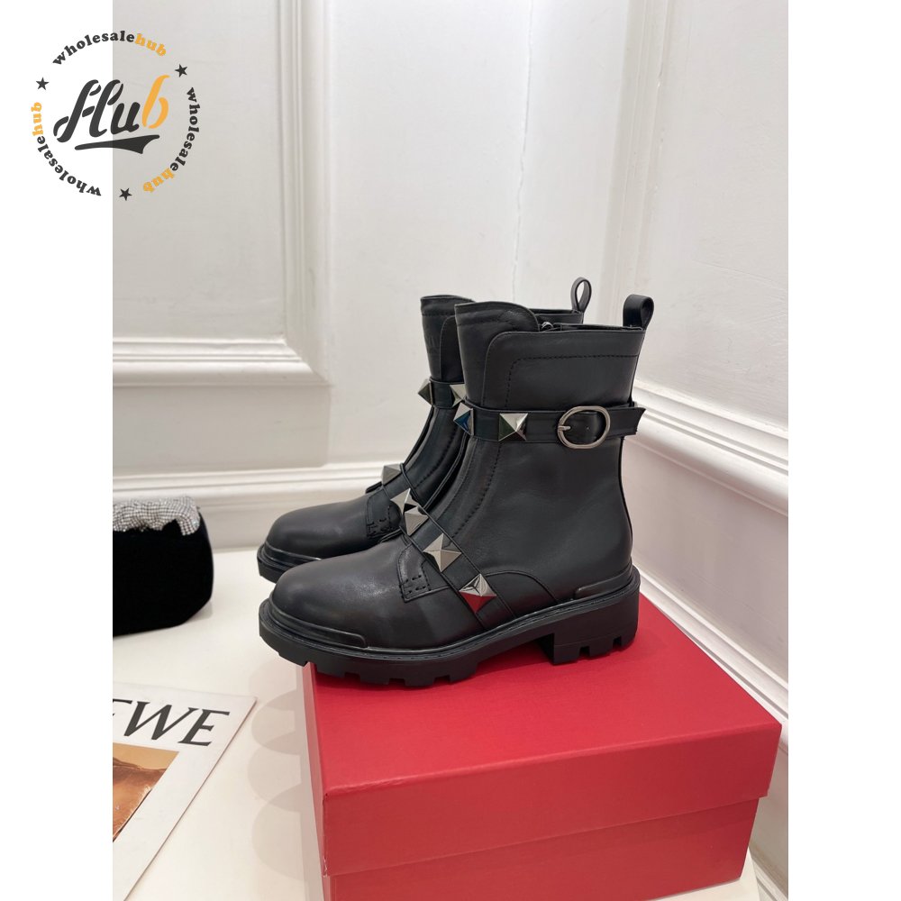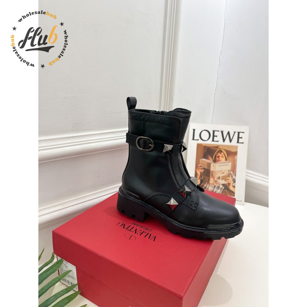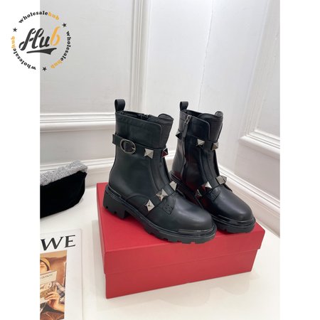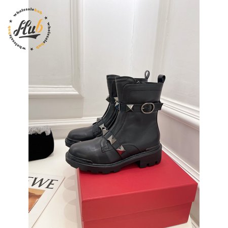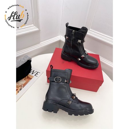 Valentino Roman Stud Calfskin Combat Boot With Tonal Studs 40MM 35-39