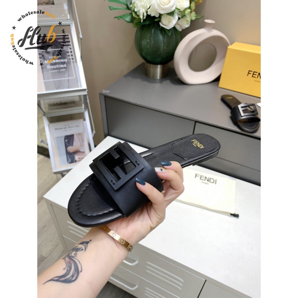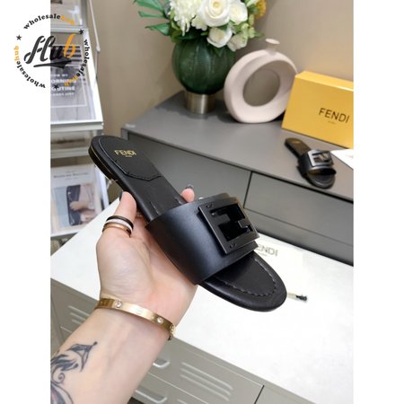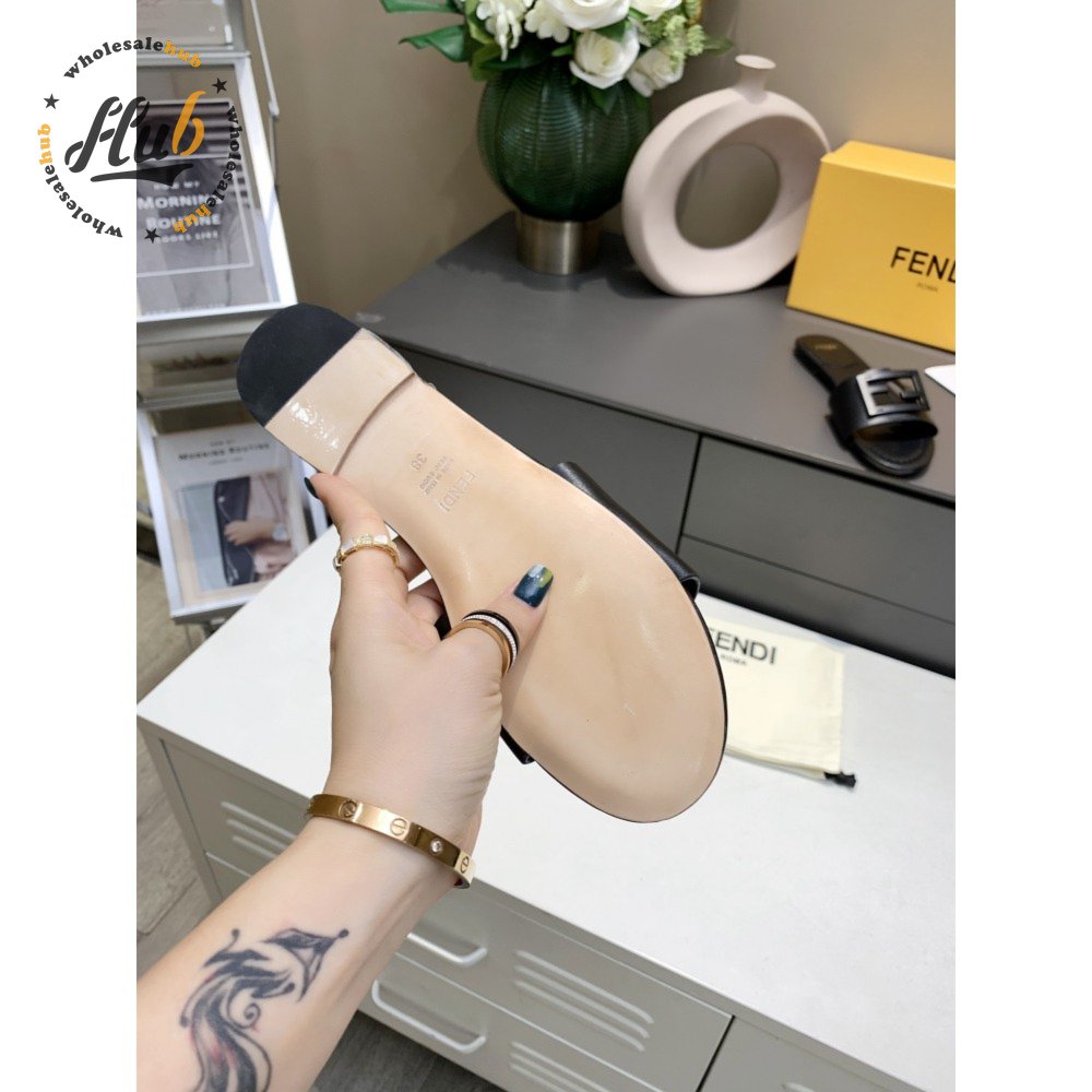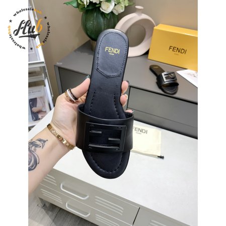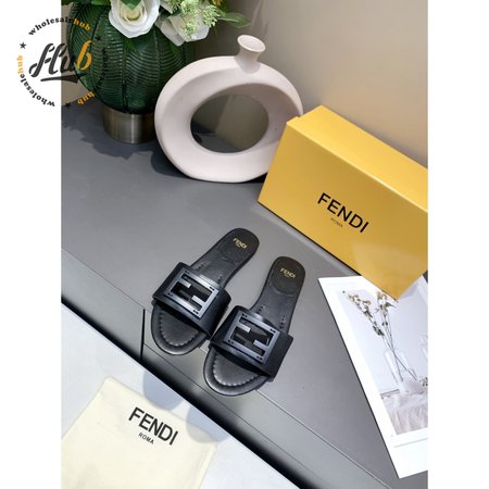 Fendi Baguette Black Leather Slides 35-40