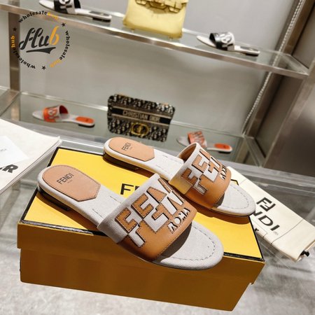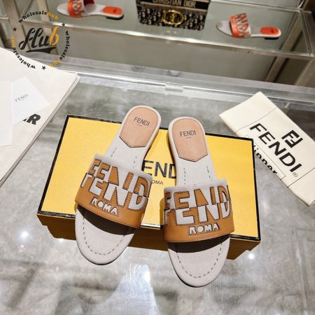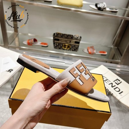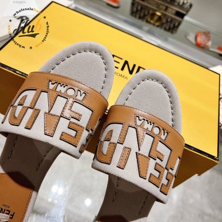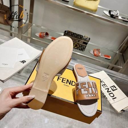 Fendi Women's Cuoio Grezzo Signature Bicolor Logo Slide Sandals