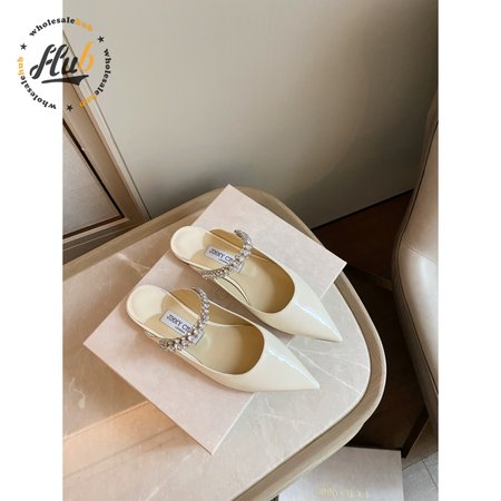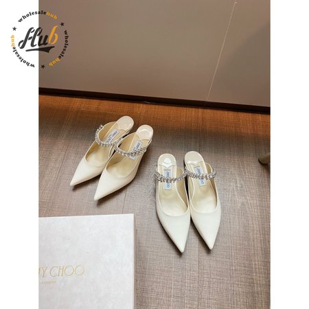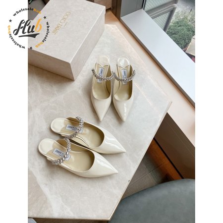 Jimmy Choo Women Bing 65 Patent Leather Crystal Strap Ballet Mules