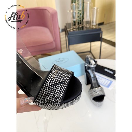 Prada Satin Platform Sandals With Crystals 35-39