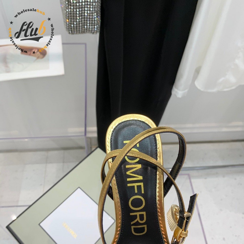 Tom Ford Padlock Metallic Leather Sandals