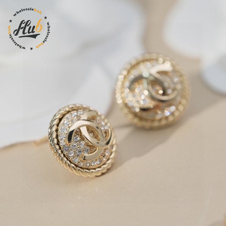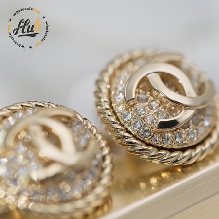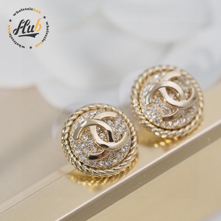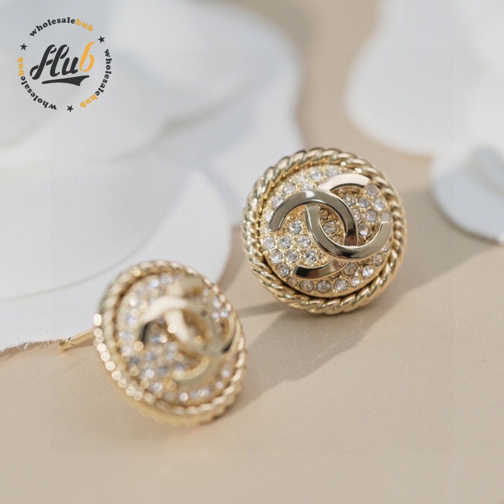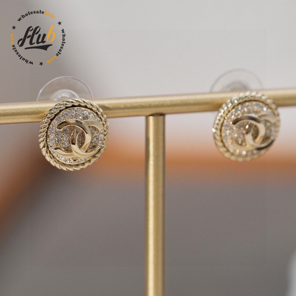 Chanel Double C Round Full Diamond Stud Earrings